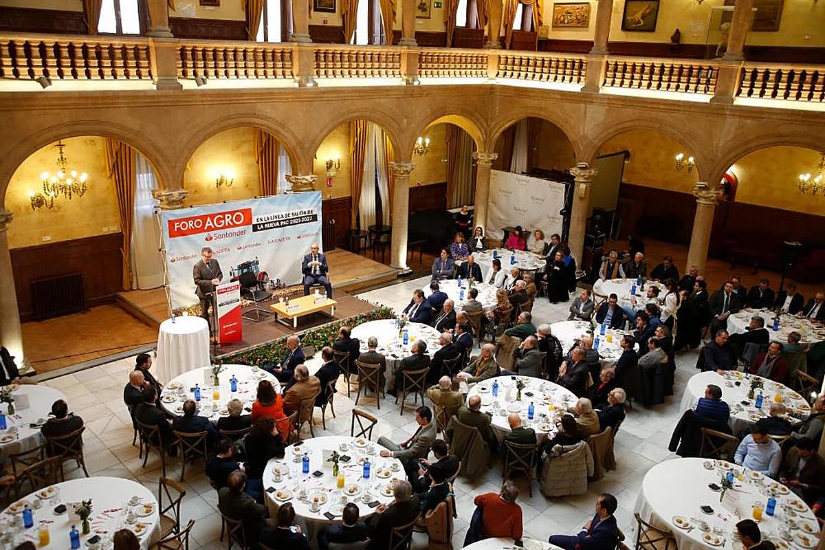 El consejero de Agricultura, Ganadería y Desarrollo Rural, Gerardo Dueñas arremete contra la nueva PAC, que entra en vigor el 1 de marzo, por considerarla “muy controvertida” y “nada definida” y que poco ayuda a los ganaderos y agricultores de Castilla y León. En este sentido, Dueñas, que ha participado en el Casino en el Foro Agro organizado por LA GACETA y patrocinado por Banco Santander, y en el que se han dado cita representantes de todos los estamentos y entidades del sector, ha anunciado el compromiso de la Administración regional por dar batalla a estos nuevos planteamientos en un intento por cambiar “una parte importante de los criterios de sostenibilidad, medio ambiente e intervencionismo planteados por la Unión Europea” en la nueva PAC, y que, en palabras del consejero de Agricultura, Ganadería y Desarrollo Rural, “van a dificultar la capacidad de producción de nuestros agricultores y ganaderos”.