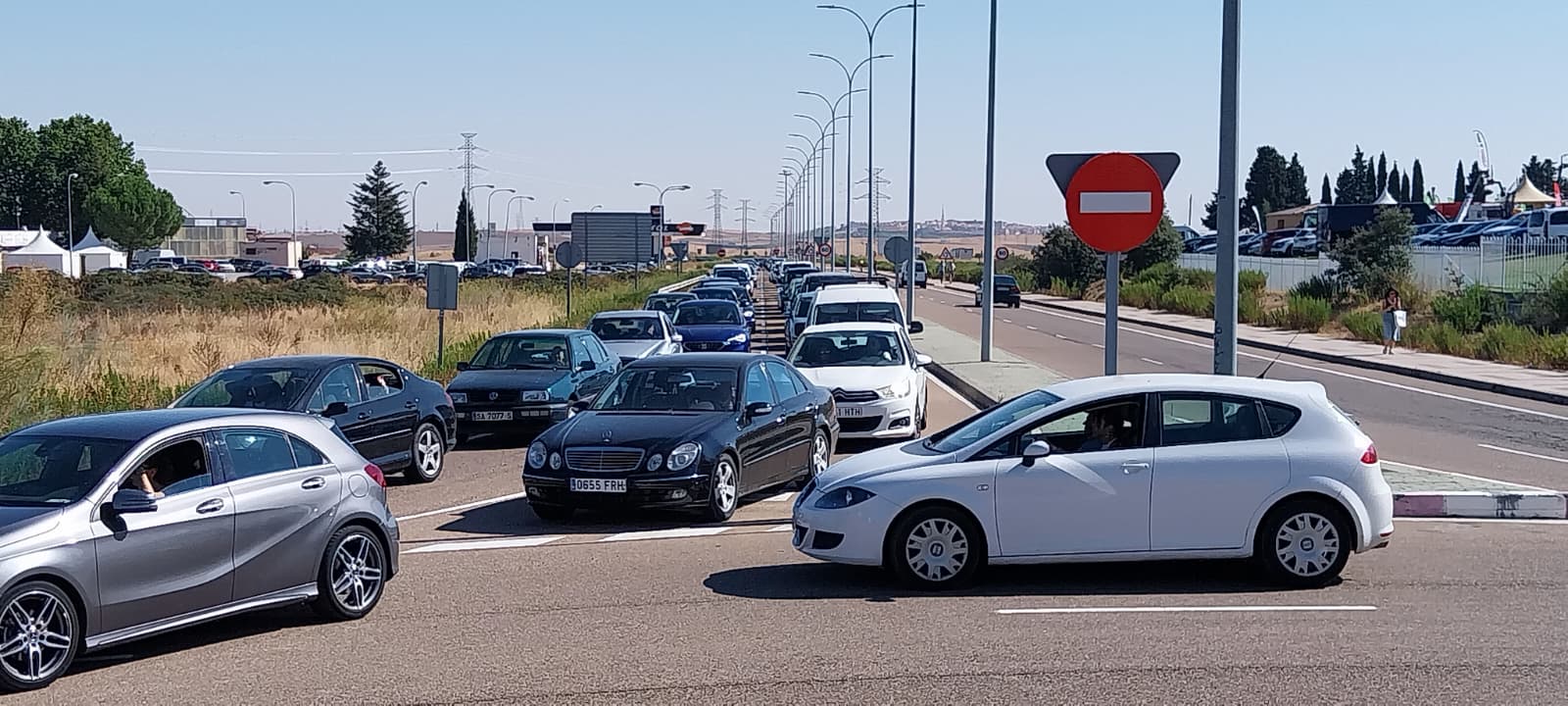 Después del éxito que han tenido los dos primeros días de 'Salamaq 2025', este sábado se han vuelto a registrar largas colas y atascos en los accesos al recinto ferial de la Diputación de Salamanca. De hecho, desde la gasolinera de la N-620 hasta el interior del recinto, se tarda ahora unos siete minutos. Aunque hay plazas libres en el parking, muchos visitantes han dejado el coche allí para evitar problemas al salir después del evento.