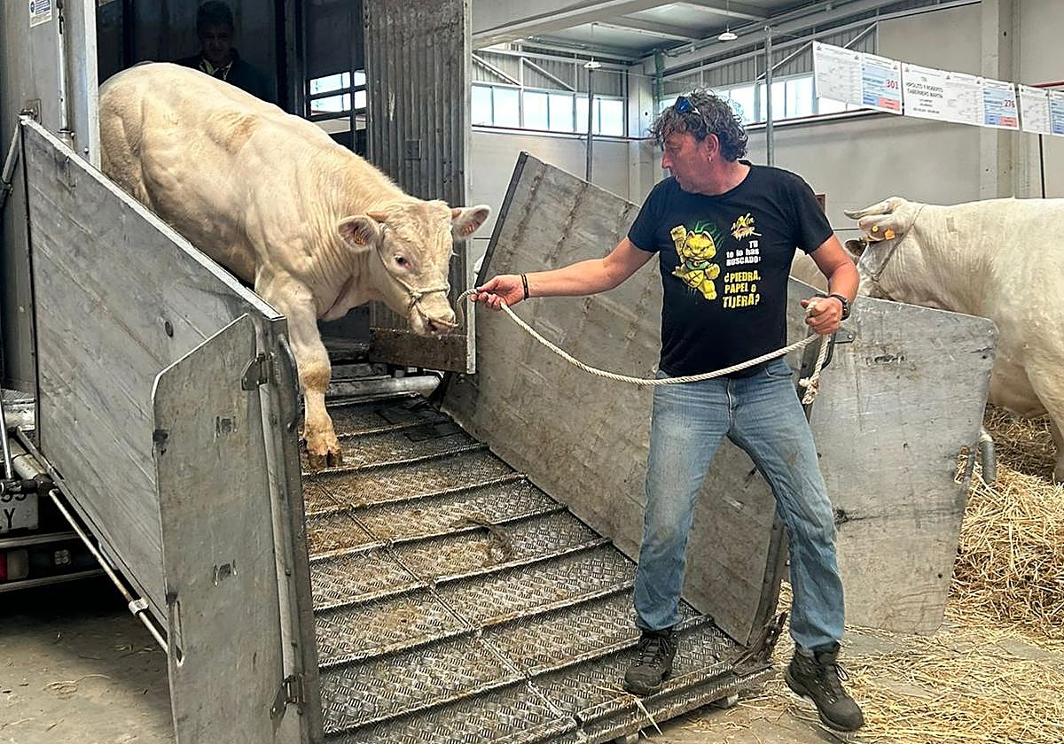 La construcción del bulevar ha reducido muelles de descarga y eso ha incrementado el jaleo habitual del certamen el día anterior a abrir sus puertas. Desde primera hora entró ganado y se espera que siga llegando a lo largo de la tarde. En torno a las cuatro quedó ya completo el espacio de porcino ibérico, con en torno a 40 ejemplares y dos duroc, y casi todo el charoles y lumusín.