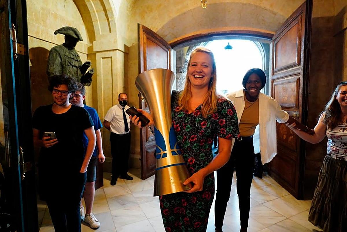 El Perfumerías Avenida brindó este viernes a su afición el octavo título de Liga logrado en la Fuente de San Luis de Valencia. Cientos de personas se congregaron en la Plaza Mayor para recibir a las campeonas y demostrar una vez más la comunión que hay entre afición y equipo. Previamente las jugadoras, cuerpo técnico y directiva fueron recibidos en el Salón de Reinas del Ayuntamiento de Salamanca por la corporación municipal. El alcalde de la ciudad, Carlos García Carbayo, destacó que es el “mejor equipo de Salamanca y España y uno de los mejores de Europa”.