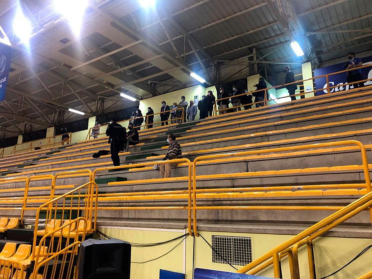 Prórroga con empate a 56 y la Policía y los vigilantes de seguridad desalojando a la afición por el toque de queda. Los cinco minutos decisivos y el público se tiene que ir, aunque los remolones se aguantan para marcharse.
