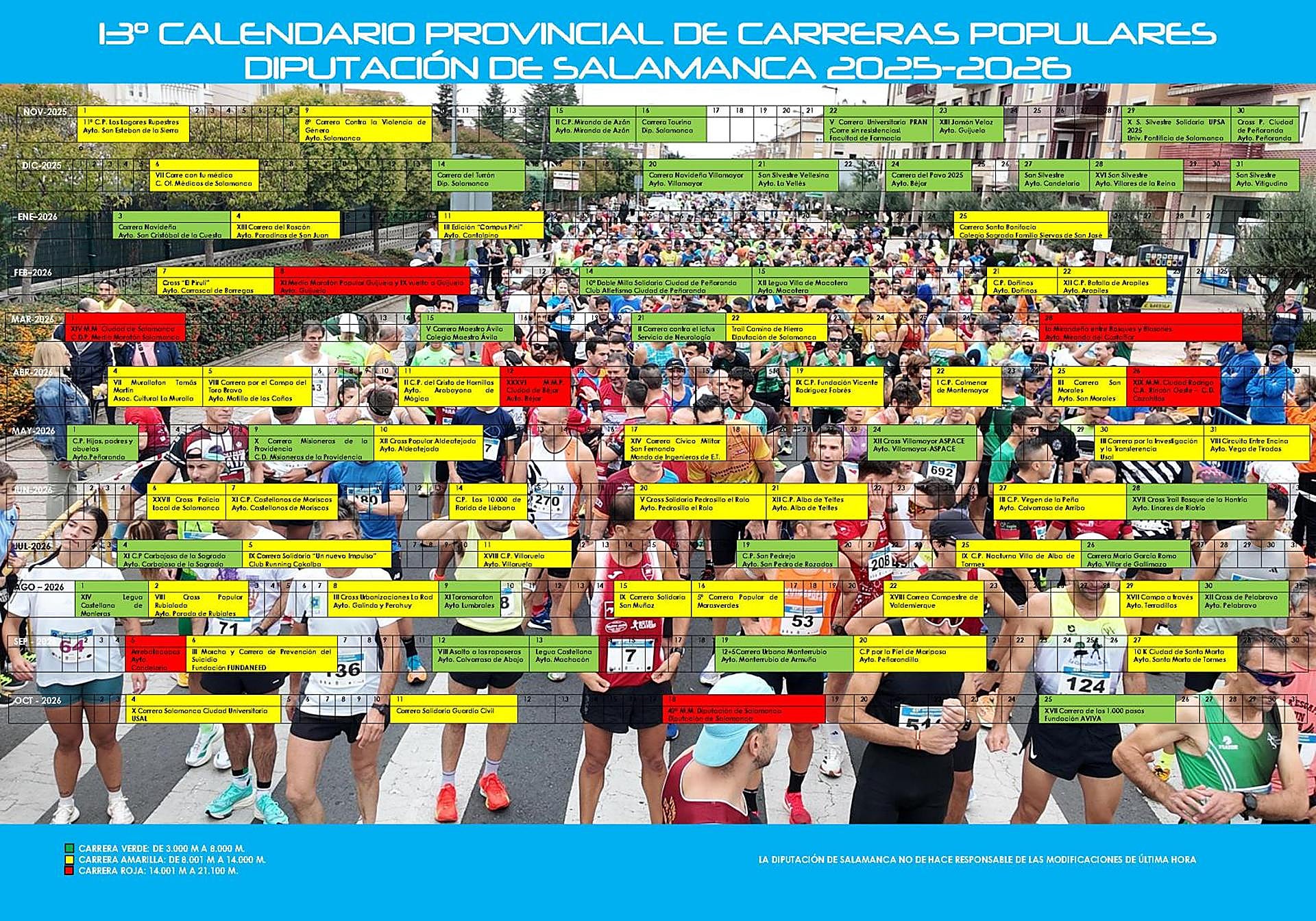 «Podemos presumir de ser el circuito oficial con mayor número de pruebas de toda España», destacó el representante provincial, quien subrayó que la iniciativa «goza de buena salud» y continúa siendo «referente para otras provincias que se interesan por nuestro modelo». El nuevo calendario incluye un total de 79 pruebas: 32 verdes, 40 amarillas y 7 rojas, distribuidas por 60 municipios y respaldadas por 18 asociaciones o entidades deportivas.