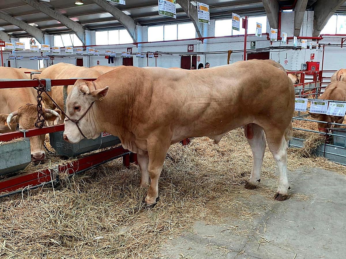 Noya. Este toro de Blonda de Aquitania es uno de los ejemplares más vistosos de Salamaq. ¿Cuánto pesa? Eso lo tendrán que adivinar los que visiten la feria ya que es uno de los ejemplares del concurso de pesos.