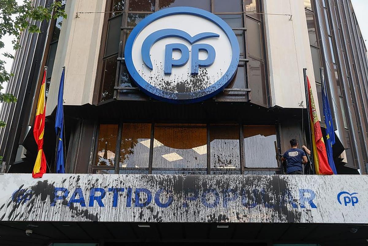 En la fachada del edificio donde se ubica la sede del PSOE, las manchas de pintura negra se extienden por la entrada, borrando el logo del partido, mientras que en el caso del PP, la pintura alcanza también la puerta de entrada y el frontal situado encima con las siglas de la formación. El logo, en la parte superior, solo ha sido ligeramente pintado.