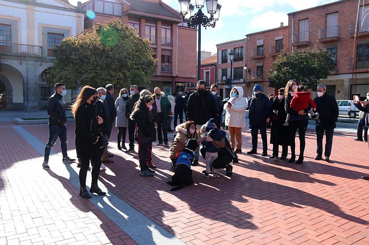 Miembros del movimiento social “Un perro para Ainhoa” y la alcaldesa y diputada provincial, Carmen Ávila, también participaron en el acto donde las familias de Ainhoa y Asier lanzaron un mensaje reivindicativo para que las administraciones públicas puedan ayudar económicamente a las familias que necesitan perros de asistencia para mejorar la vida de sus hijos.