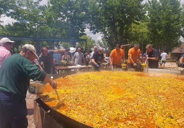 La descomunal paella que se cocinó y repartió entre los vecinos de la localidad de Cabrerizos, con motivo de las fiestas del Señor, este año llegó a las cinco mil raciones. Todo un récord en el más de cuarenta personas colaboraron en la elaboración del arroz que se comenzó a repartir con puntualidad a las dos y media de la tarde.