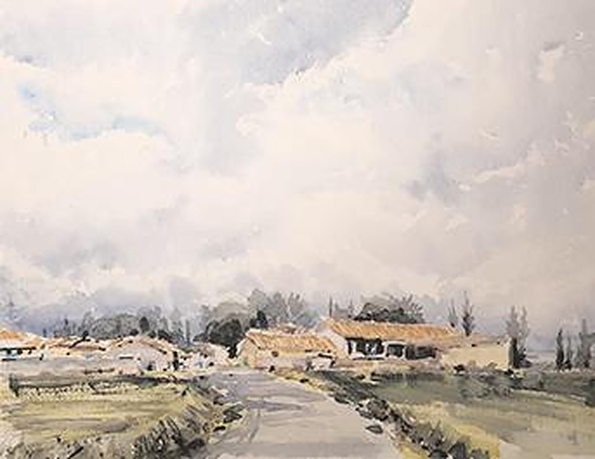 Las tonalidades cambiantes de los cielos en las distintas épocas del año, con los pueblos en el horizonte, destacan en las acuarelas de Jordi Sangenís que recogen precisamente las estampas que él ve a diario.