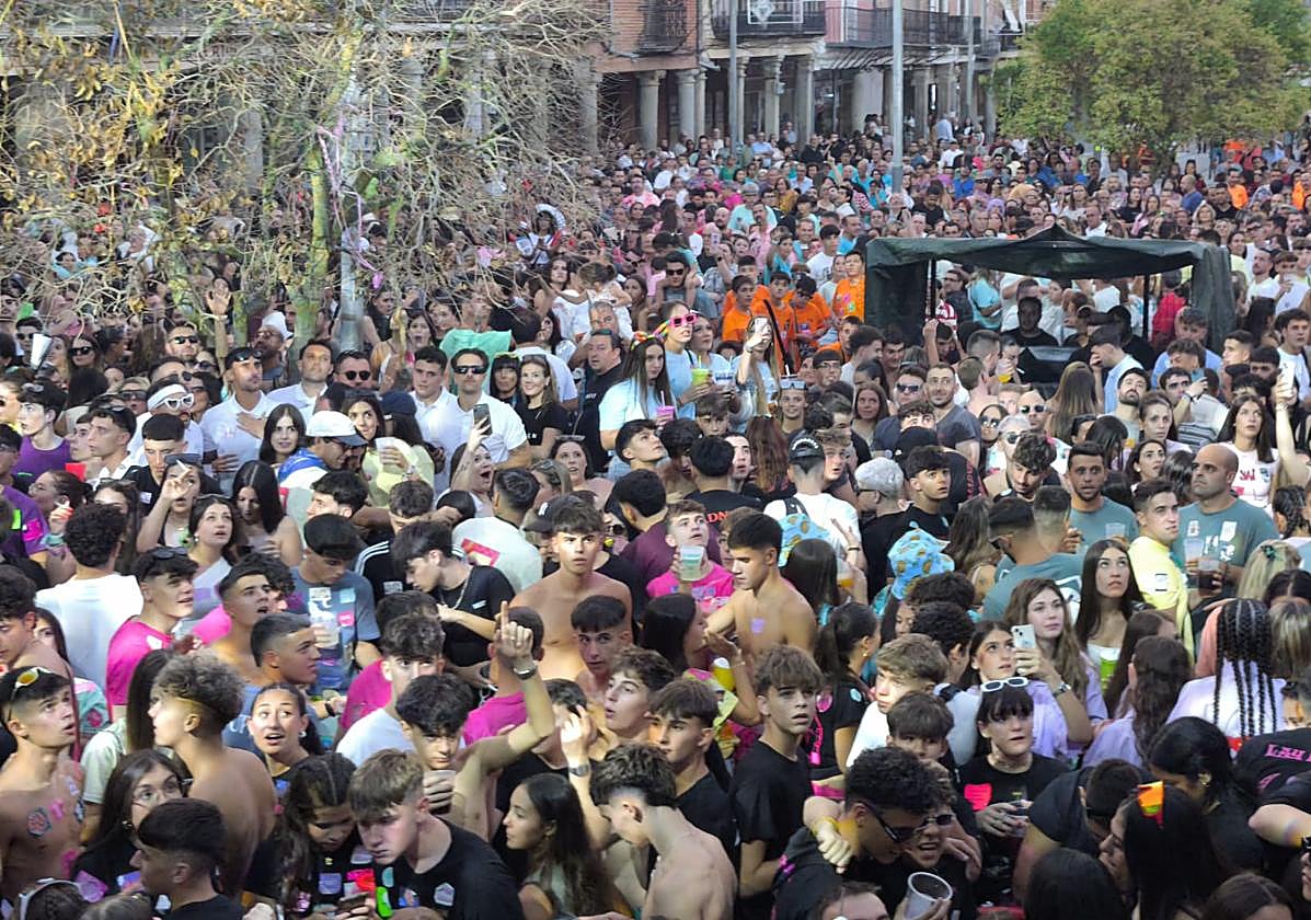 Las peñas se han encargado de llenar de energía el ambiente con su presencia y ganas de disfrutar. A la hora marcada han comenzado a llegar a la plaza de la Constitución y llenarla de colorido con sus camisetas y uniformes festivos compartidos. El buen ambiente se ha visto enriquecido con la animación puesta por la disco móvil 'Zarabanda' y 'Nuevo Origen' además de los dj's Briyi, Djangoö y Dani Jiménez, este último ganador del concurso 2024. Ellos han sabido poner la animación precisa para hacer de ese momento la base fundamental de unas celebraciones que harán vibrar la ciudad hasta el domingo.