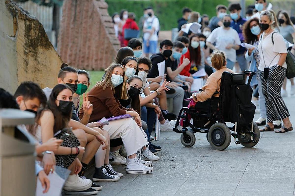 Un total de 2.731 estudiantes, 405 menos que el año pasado, han comenzado a examinarse este miércoles de la EBAU en Salamanca. Solo tres alumnos se han tenido que excusar: uno por covid, otro por una intervención quirúrgica y otro por un incidente de última hora. A las 9.00 exactas se ha entregado el examen de Lengua Castellana y Literatura. Durante media hora se permitirá entrar a quien llegue tarde pero no podrá salir nadie. A las 10.30 acabará la primera prueba y luego se sucederán hasta el viernes el resto de exámenes. Este miércoles es el turno además de Historia de España y Lengua extranjera. Al margen de los alumnos con necesidades especiales que se examinan en la sala de Juntas de la Facultad de Ciencias, una alumna “burbuja” realizará la prueba en su casa y otra en la unidad de Trastornos alimentarios del Hospital.