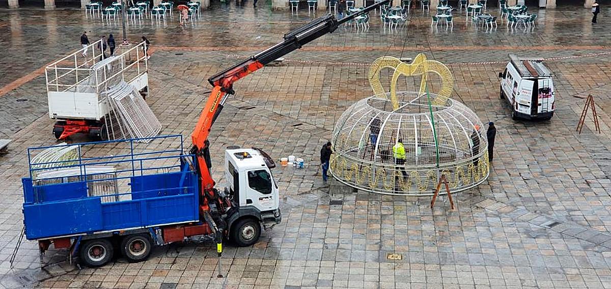 La instalación de la gran campana que este año decorará la Plaza Mayor se ha llevado a cabo durante este lunes, día en el que también se ha realizado una prueba de luces. El encendido de la iluminación navideña de toda la ciudad está prevista para este miércoles, antes del Black Friday y para que no coincida con el Día de la Eliminación de la Violencia contra las Mujeres.