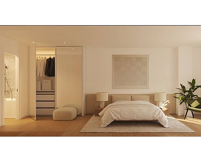 La distribución interior de las viviendas ha sido concebida para potenciar amplitud y fluidez. Salón, comedor y cocina se integran en un espacio central versátil y acogedor, los dormitorios principales disponen de baños en suite y armarios empotrados, mientras que las terrazas y ventanales convierten la luz natural en protagonista. Las viviendas cuentan con soluciones de máxima eficiencia energética como aerotermia y suelo radiante; y además están diseñadas para tener ventilación natural cruzada, gracias a que cuentan con ventanas en lados opuestos. Esto no solo mejora el confort interior, sino que también permite una mejor orientación según la luz solar.