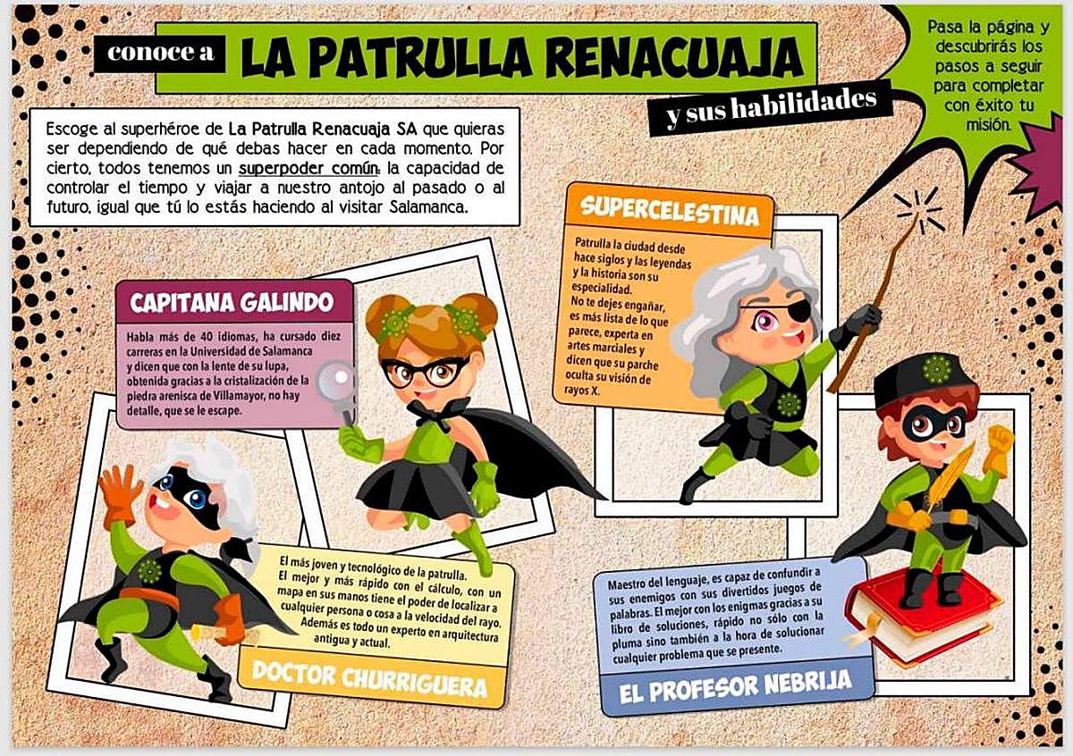 Apenas unas semanas antes de la irrupción de la covid, Turismo decidió convertir a la vieja bruja alcahueta de la literatura, a la preceptora de los hijos de los Reyes Católicos, al arquitecto cuyo apellido está vinculado con los principales monumentos de la ciudad y al autor de la primera gramática castellana en cuatro personajes infantiles con superpoderes. Son la “Patrulla Renacuaja”, una propuesta divertida para descubrir en familia los principales monumentos de la capital del Tormes.