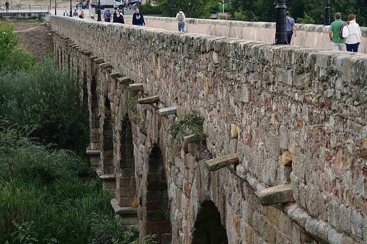Freno a la ‘invasión verde’ del Puente Romano con un saneado de sus piedras