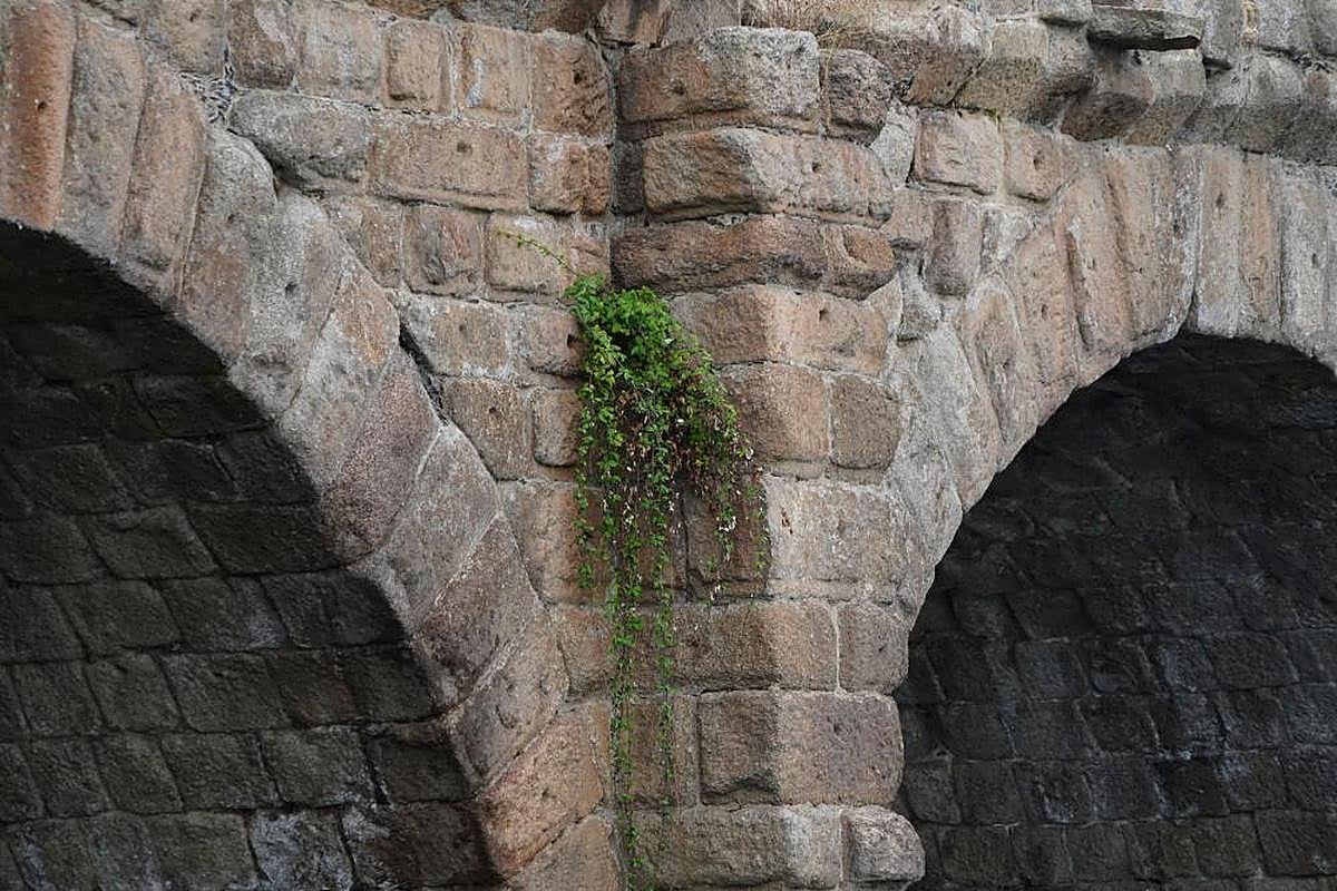 Varios tramos del Puente Romano comienzan a parecer un incipiente jardín vertical. La vegetación no solo crece a los pies de este histórico paso sobre el río Tormes, sino que algunas plantas se han abierto paso también entre las piedras de sus petriles y en las basas de sus pilares, así como en las gárgolas por las que desagua su calzada.