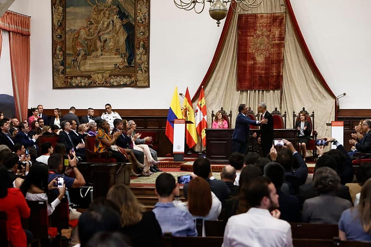 El presidente de Colombia, Gustavo Petro, ha recibido este viernes la Medalla de la Universidad de Salamanca. Un acto no está exento de polémica, más aún después de las últimas palabras de Petro en su visita a España, ya que ha vuelto a insistir en la lucha de Colombia contra el “yugo español” en la conquista de América. El Estudio salmantino ha justificado el reconocimiento al presidente colombiano por la relevancia estratégica de Colombia y el objetivo de atraer aún un mayor número de estudiantes.