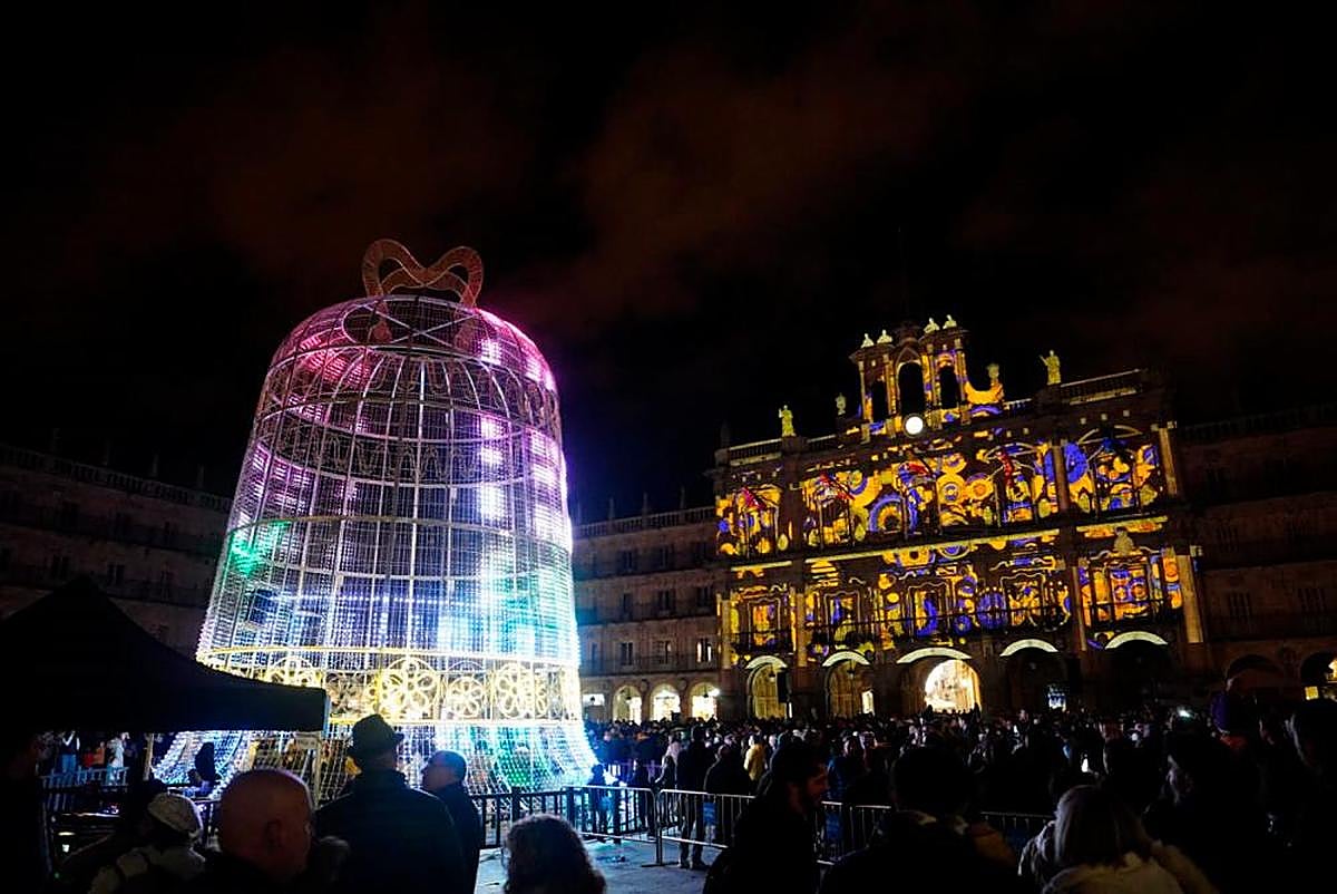 Una carpa con varios equipos tecnológicos sorprendió este sábado a los ciudadanos salmantinos y turistas que pasaban por la Plaza Mayor. Los “artilugios” eran para un ‘mapping’, pero muchos pensaron que era para la Nochevieja Universitaria.