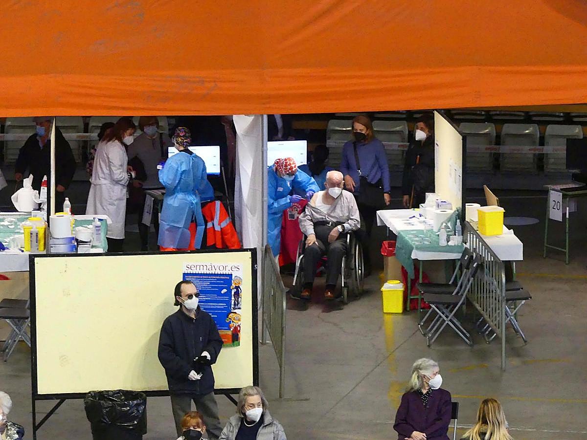 Muchos de los mayores citados han sido previsores y, por ejemplo, los citados a las 11:00 horas, se encontraban guardando pacientemente su turno desde una hora antes. De momento el ritmo de vacunación está cumpliendo los horarios previstos y no se están produciendo retrasos.