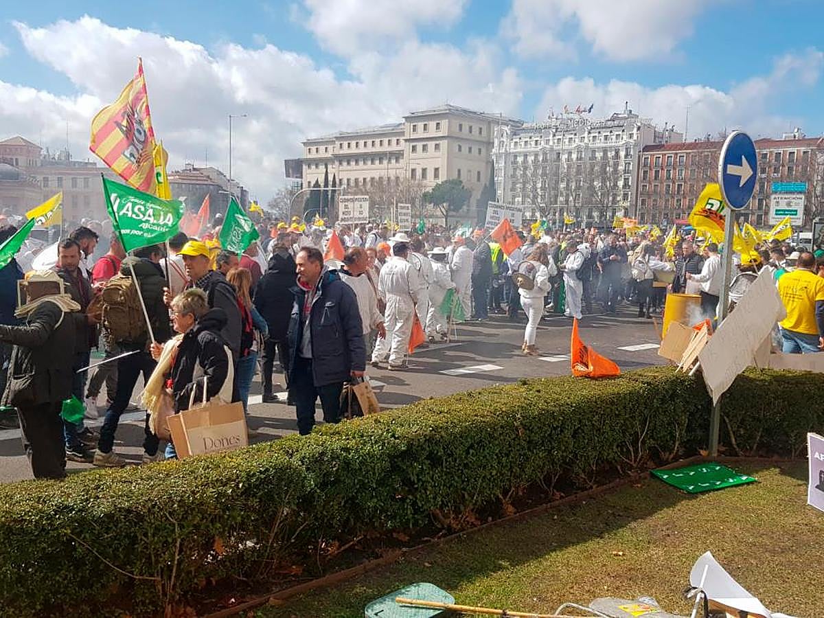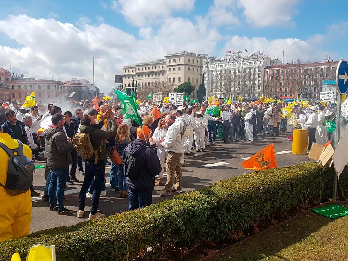 Después de movilizarse en las últimas semanas en diversos territorios, apicultoras y apicultores de toda España han acudido a Madrid para alzar su voz y poner de manifiesto la situación “absolutamente dramática” en la que se encuentran. Las apicultoras y apicultores consideran que “todas las Administraciones deben involucrarse en mayor medida en frenar los ataques y reducir las amenazas que atenazan a la apicultura”.