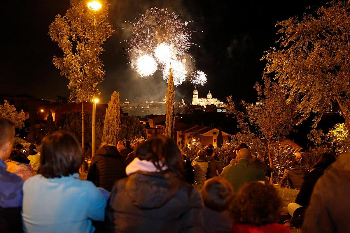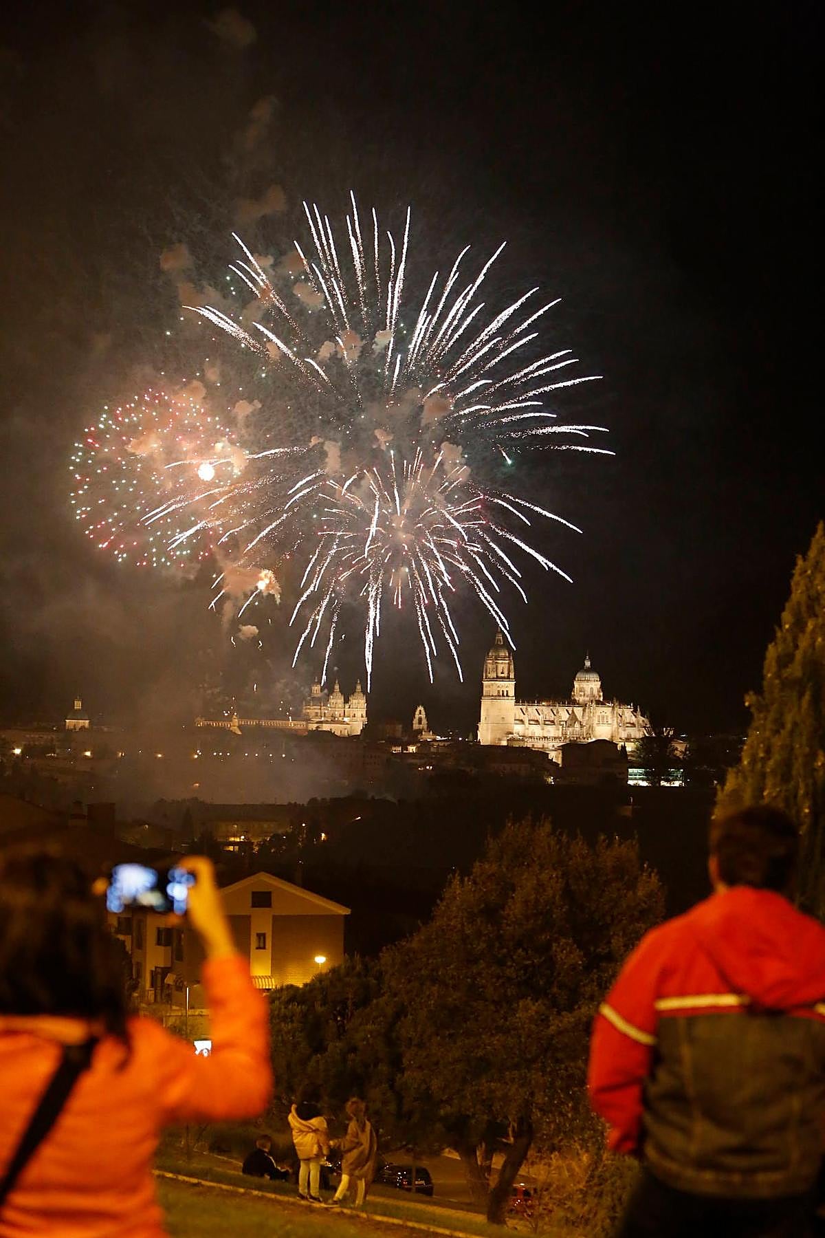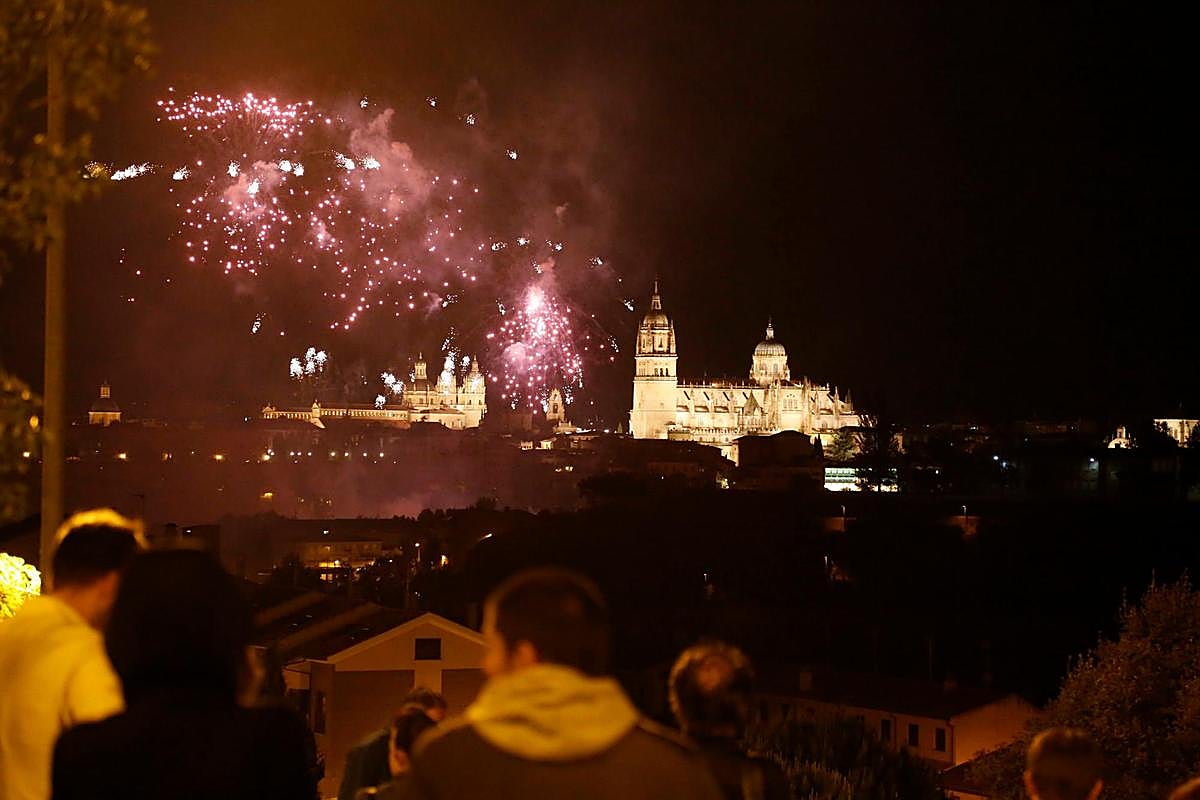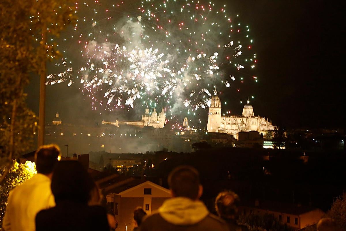 Son ya marca de la casa valenciana las candelas romanas, los monotiros, las peonías y las cantharellas que se reservan para el final y parecen devolver el día a la noche. Una ciudad iluminada de forma artificial bajo una descarga de truenos que durante varios minutos cortaron la respiración. Algunos, con los ojos abiertos de fascinación. Otros, con el ceño fruncido por el sobrecogedor ruido. Con el último golpe de cielo llegó el silencio y los cientos de salmantinos que siguieron el espectáculo aplaudieron reconociendo la valía del montaje.