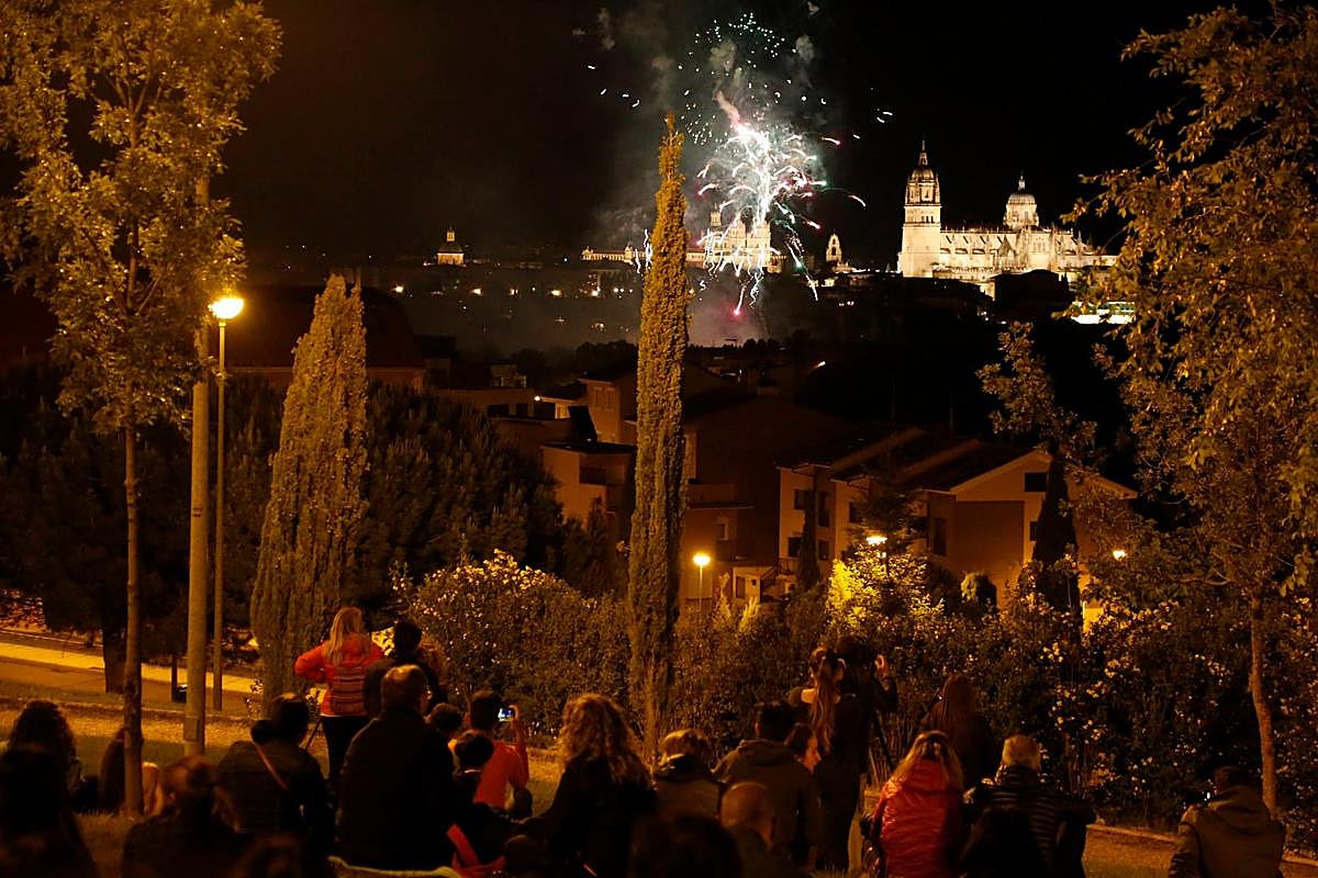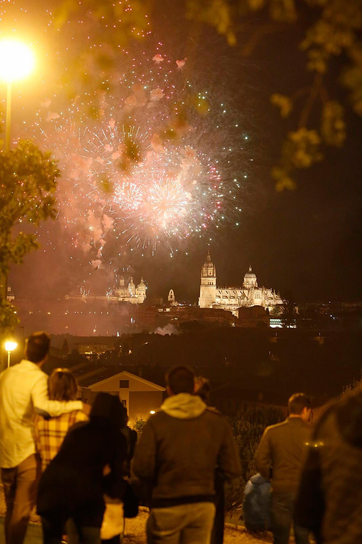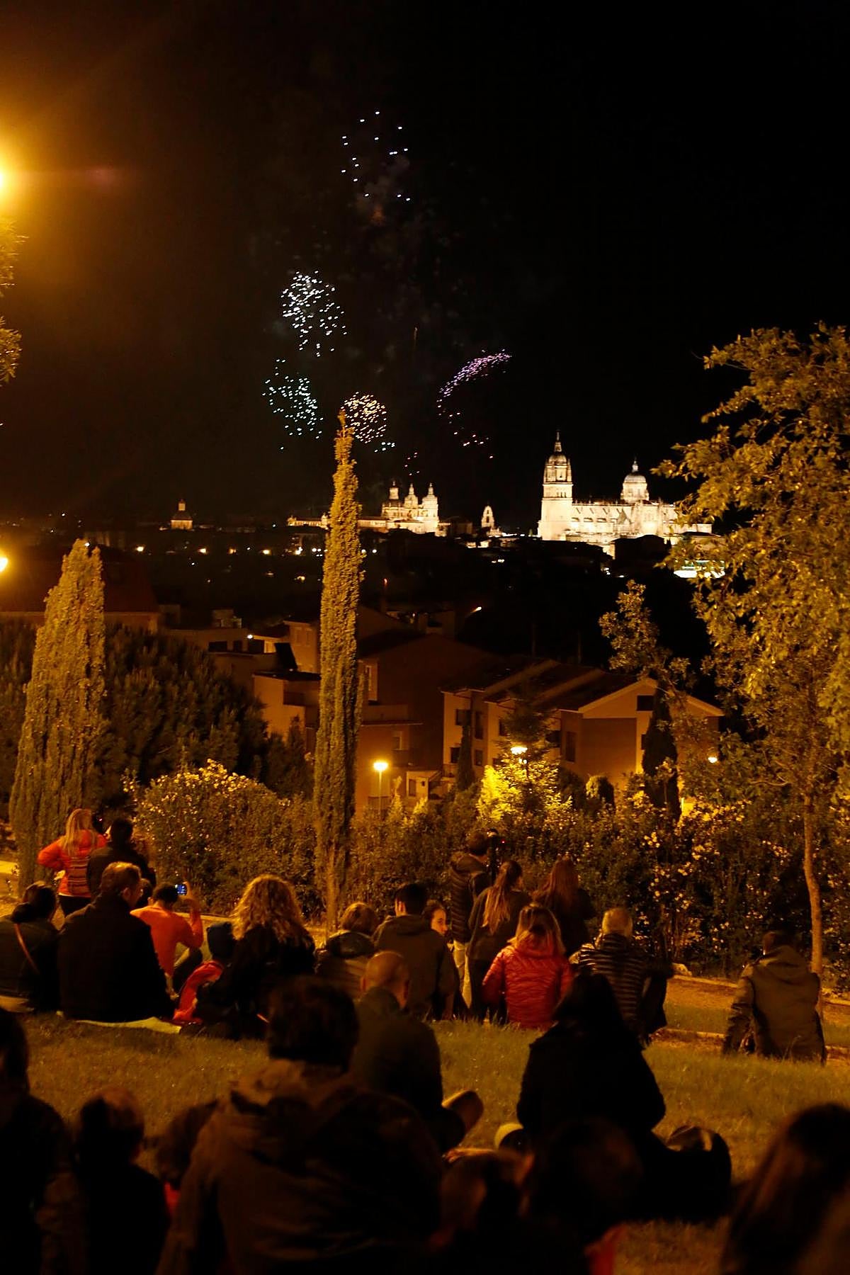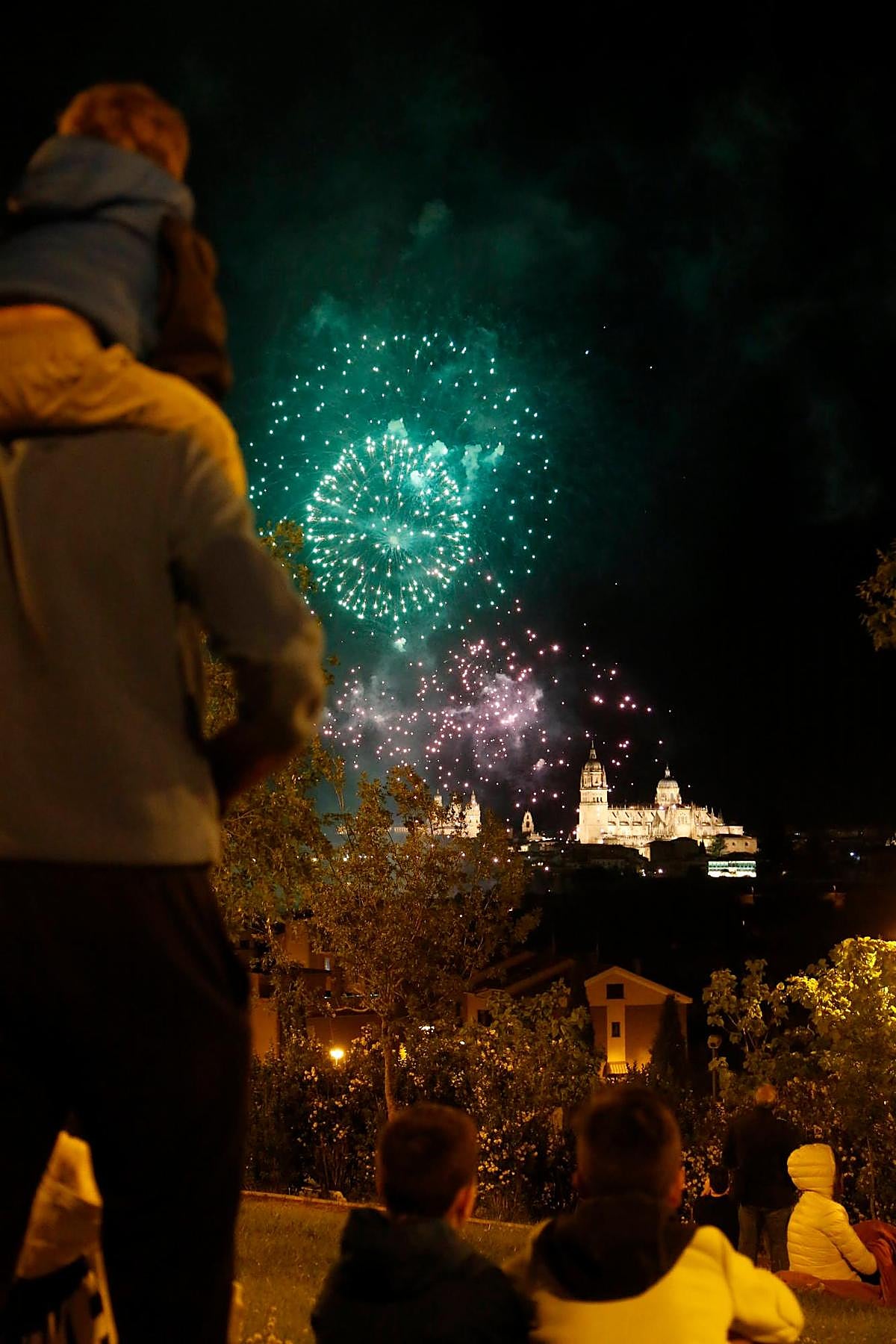 Son ya marca de la casa valenciana las candelas romanas, los monotiros, las peonías y las cantharellas que se reservan para el final y parecen devolver el día a la noche. Una ciudad iluminada de forma artificial bajo una descarga de truenos que durante varios minutos cortaron la respiración. Algunos, con los ojos abiertos de fascinación. Otros, con el ceño fruncido por el sobrecogedor ruido. Con el último golpe de cielo llegó el silencio y los cientos de salmantinos que siguieron el espectáculo aplaudieron reconociendo la valía del montaje.