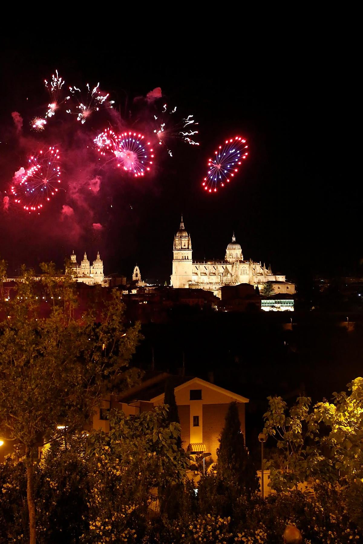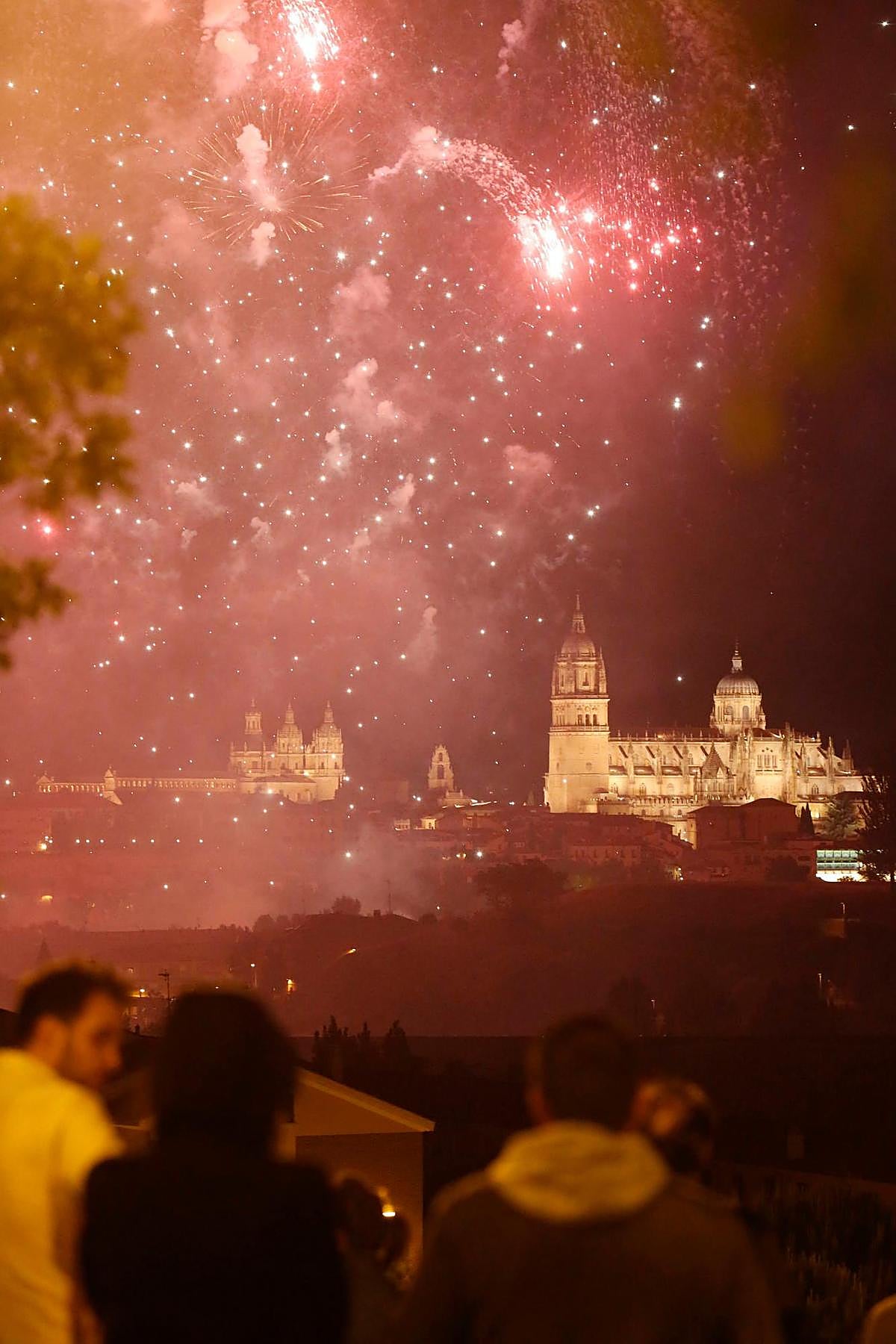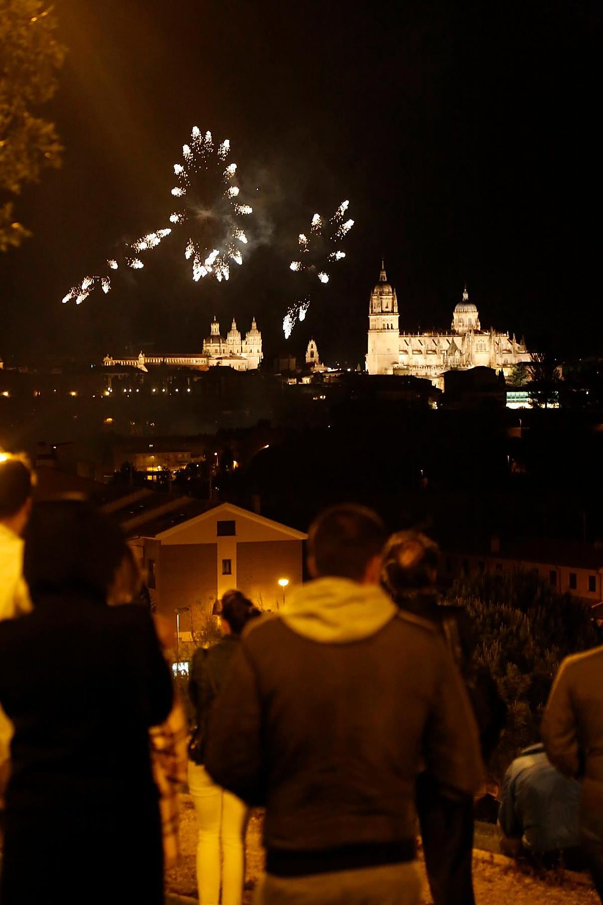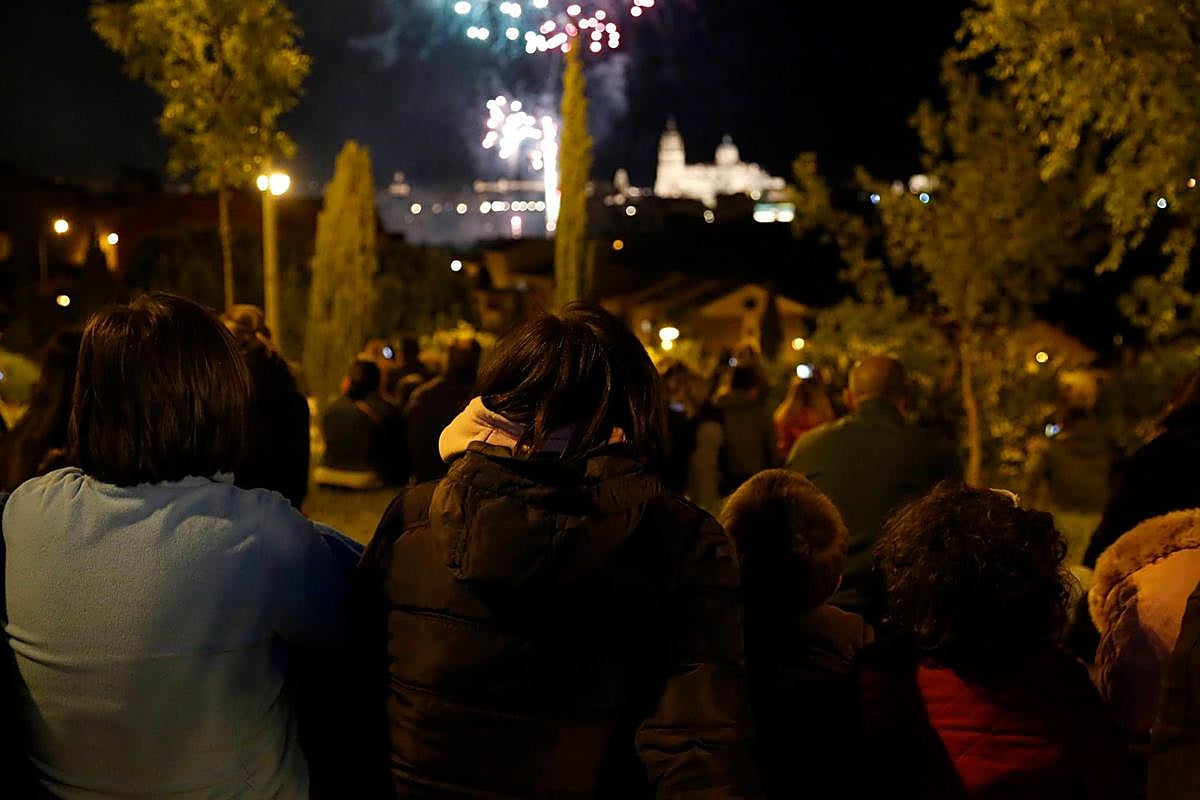 Son ya marca de la casa valenciana las candelas romanas, los monotiros, las peonías y las cantharellas que se reservan para el final y parecen devolver el día a la noche. Una ciudad iluminada de forma artificial bajo una descarga de truenos que durante varios minutos cortaron la respiración. Algunos, con los ojos abiertos de fascinación. Otros, con el ceño fruncido por el sobrecogedor ruido. Con el último golpe de cielo llegó el silencio y los cientos de salmantinos que siguieron el espectáculo aplaudieron reconociendo la valía del montaje.