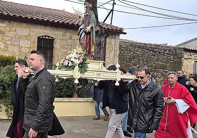 Los vecinos han compartido mesa y mantel, además de procesionar con la imagen por las calles del municipio