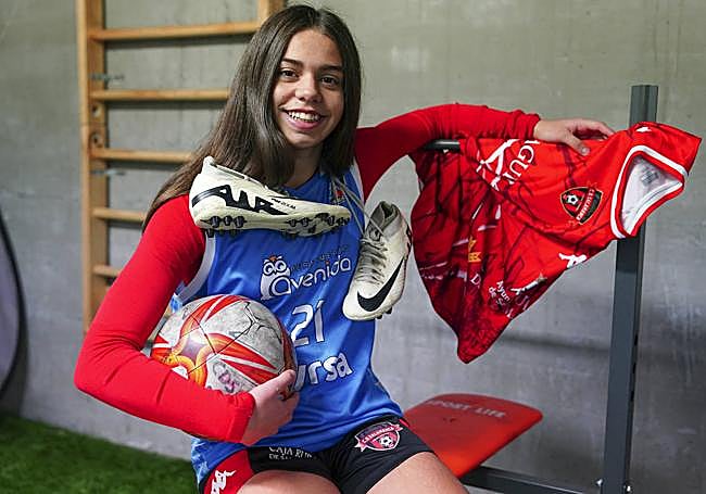Sofía García triunfa como jugadora del Salamanca FF, y su amor por el fútbol lo combina jugando en Avenida. Un día se desenvuelve como carrilera, punta o medio y al siguiente como alero sobre el parqué