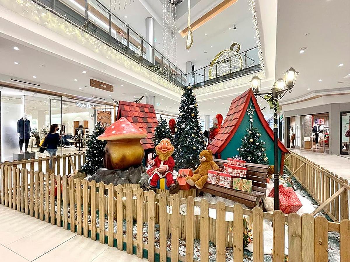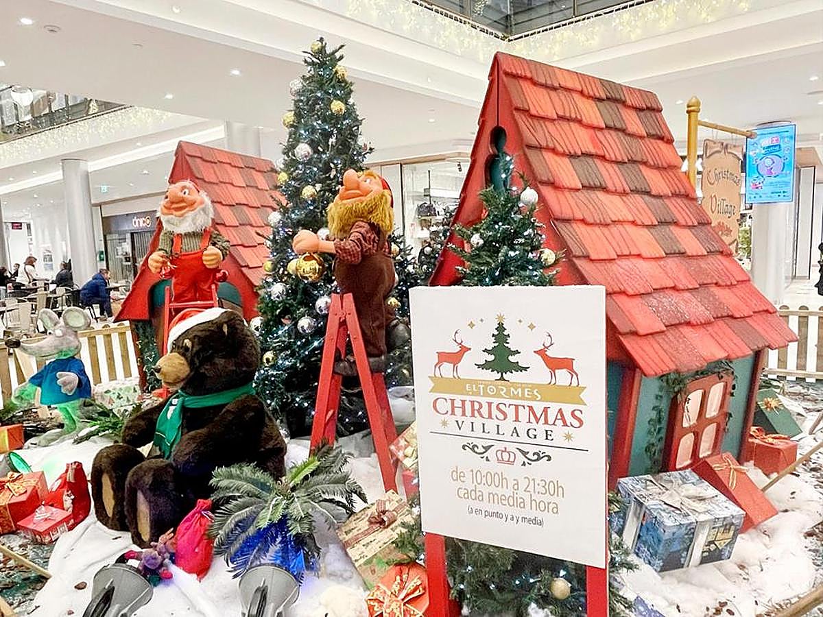 El centro luce de Navidad y muestra una villa donde unos pequeños duendes preparan el árbol para estas fechas festivas al son de la música