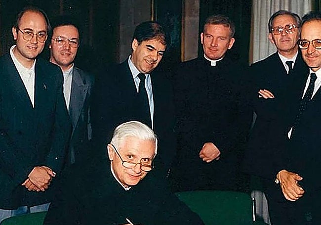 Joseph Ratzinger conoció Salamanca en el año 1989 en su única visita a la ciudad y a la Universidad Pontificia. Allí plasmó su firma en alemán tras recorrer las estancias por primera vez. Como papa fue el encargado de proclamar a Santa Bonifacia.