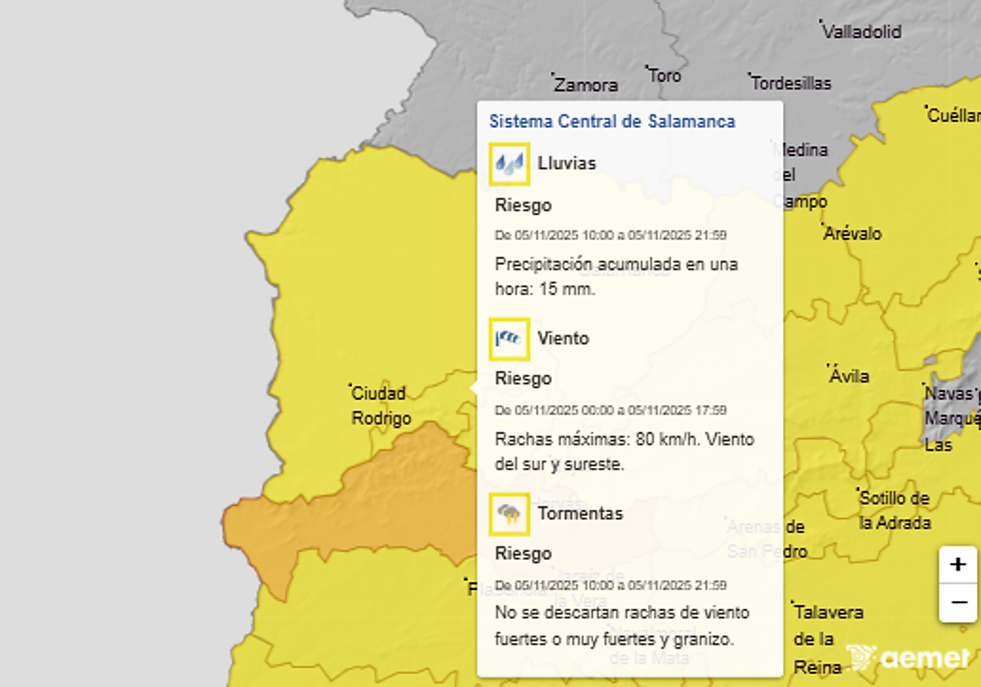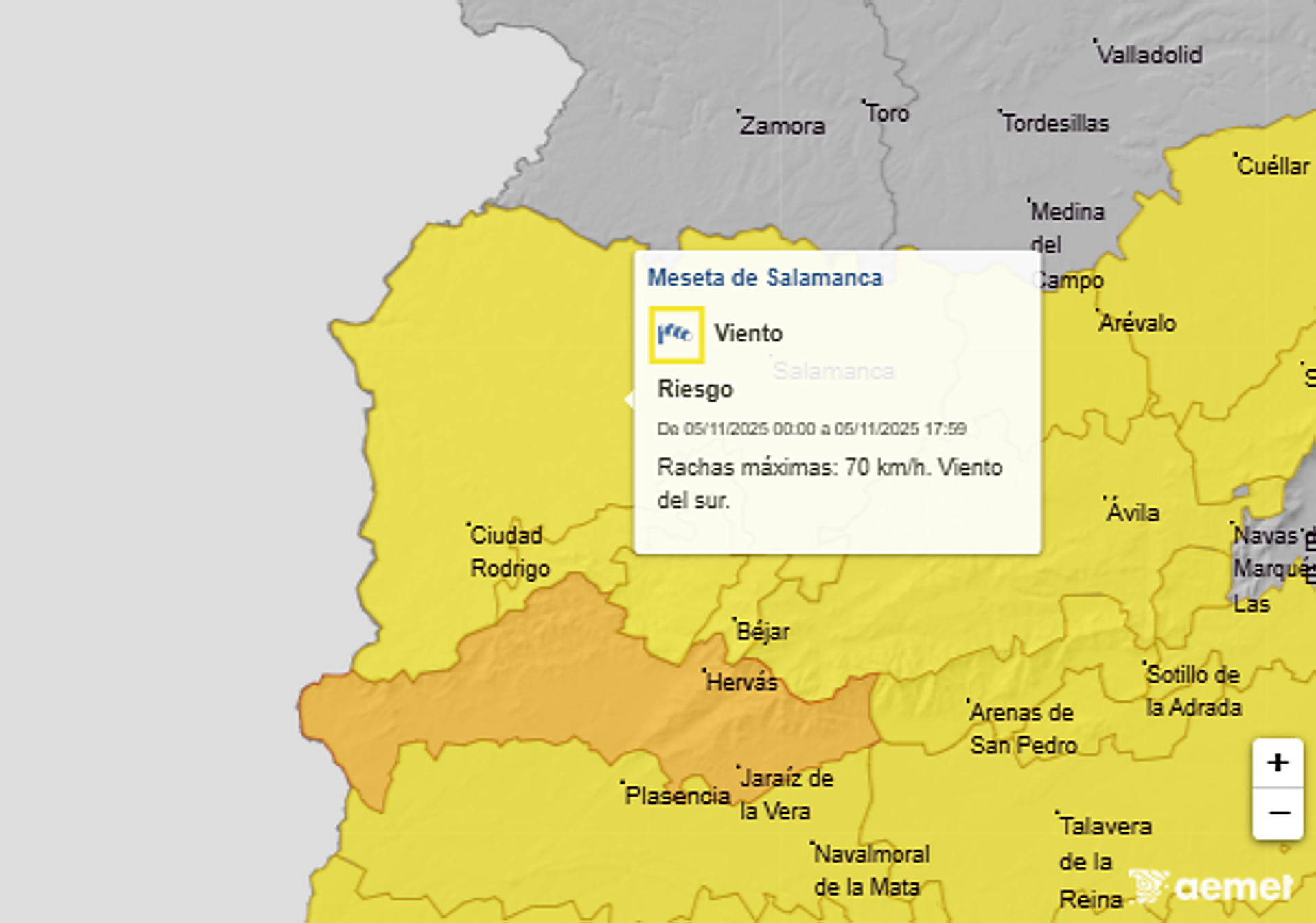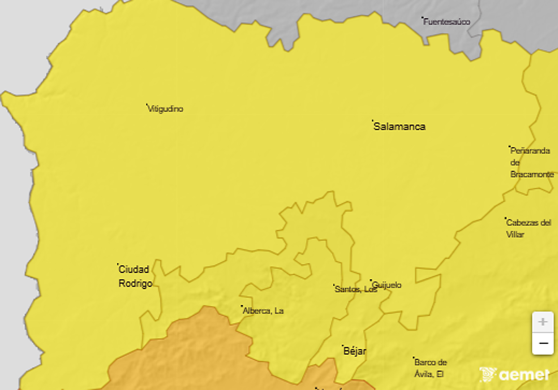 Toda la provincia de Salamanca se encuentra este miércoles bajo aviso amarillo por la AEMET, sin embargo, dependiendo de la zona, es por un motivo u otro.