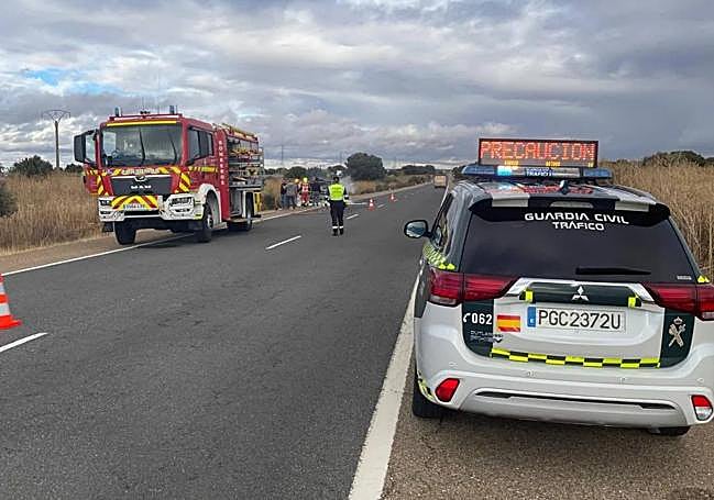 Los propios servicios de extinción de incendios recibieron el aviso a las 16.40 horas y hasta el lugar, además de una dotación, se desplazaron guardias civiles del Subsector de Tráfico de Salamanca para auxiliar al conductor -que resultó ileso- y regular el tráfico.