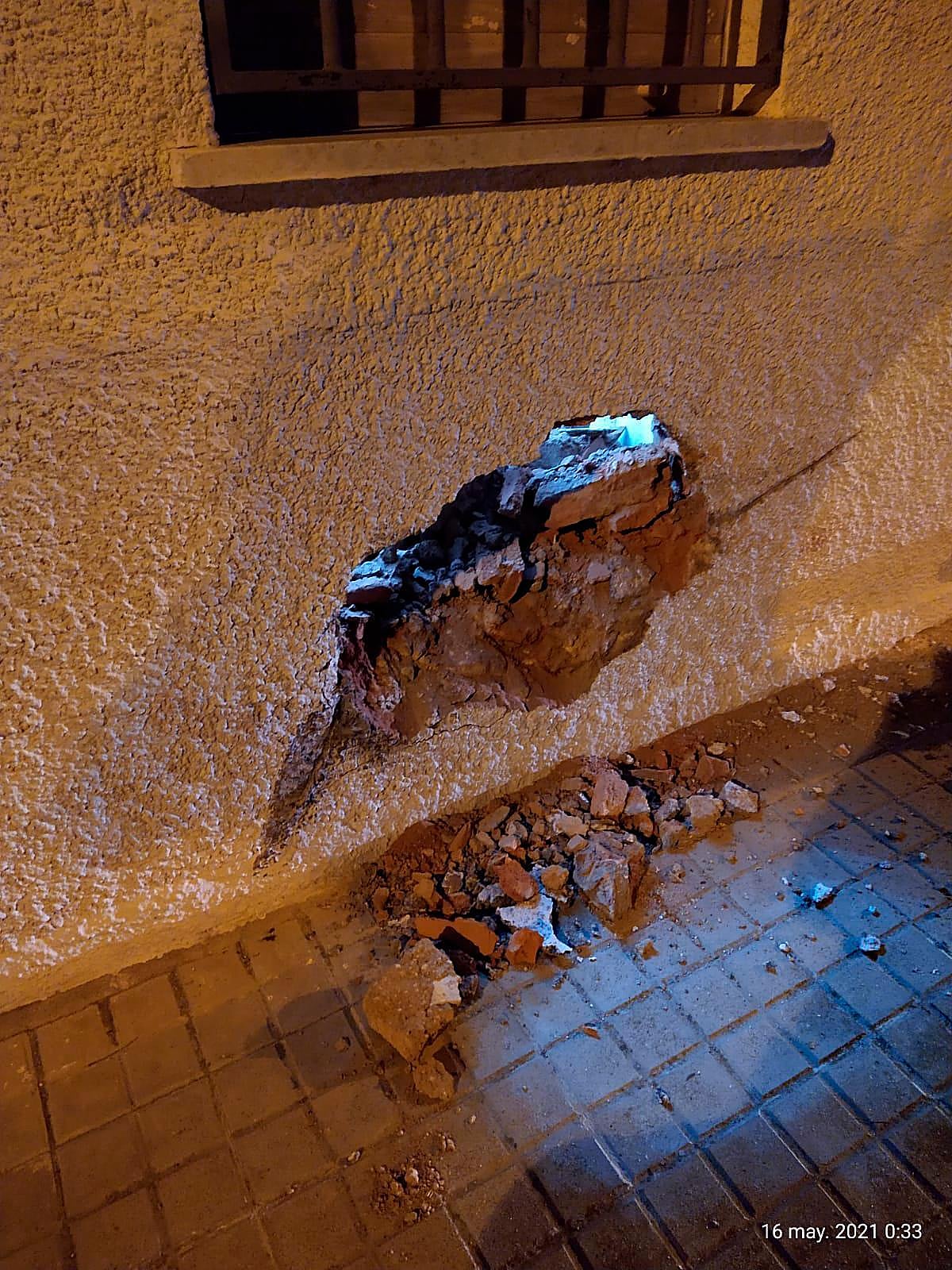 También en este accidente tuvieron que intervenir los bomberos para tapar de alguna manera el boquete, ya que, como se aprecia en las fotografías, una persona podría entrar en la vivienda a través de él.