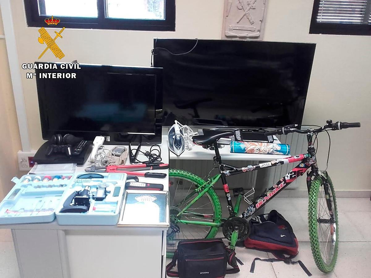Tras las actuaciones fueron intervenidas algunas herramientas, pequeños electrodoméstivos y dos teléfonos móviles supuestamente provenientes de otros hechos delictivos similares. Además, entre los objetos invervenidos que se encuentran en la imagen enviada por la Guardia Civil se puede observar uno poco habitual, un cuadro del Real Madrid. También recuperaron dos televisiones, una bicicleta, una Play Station, varias planchas de pelo, entre otros objetos.