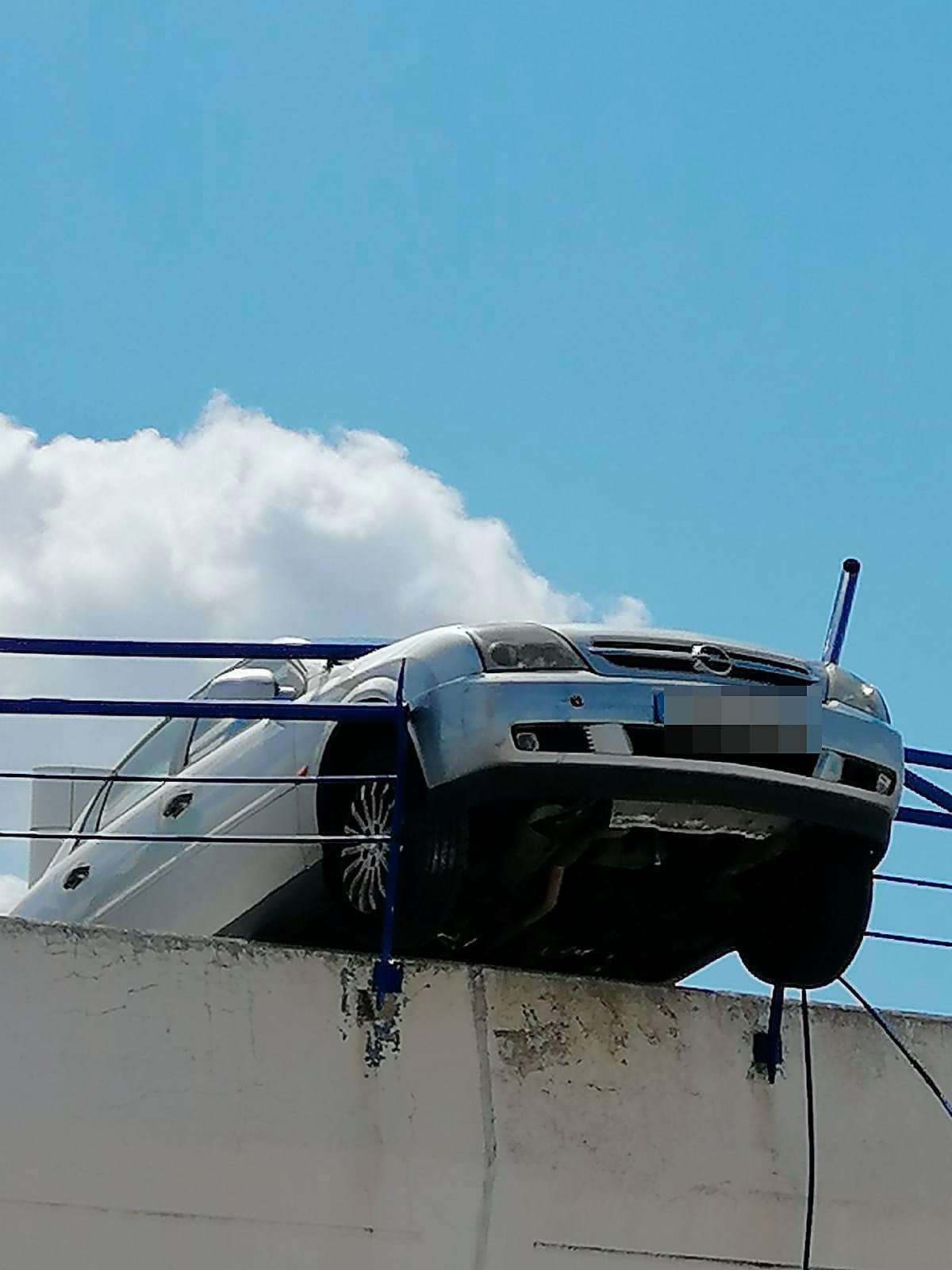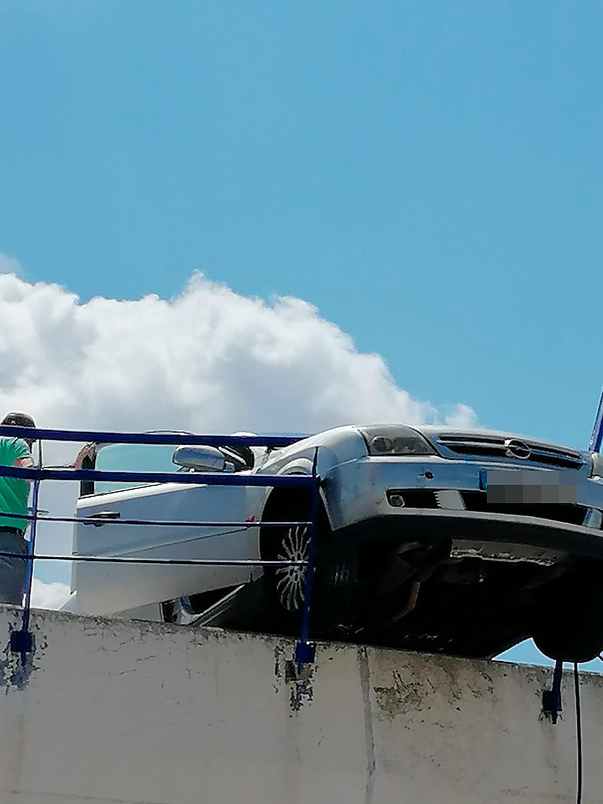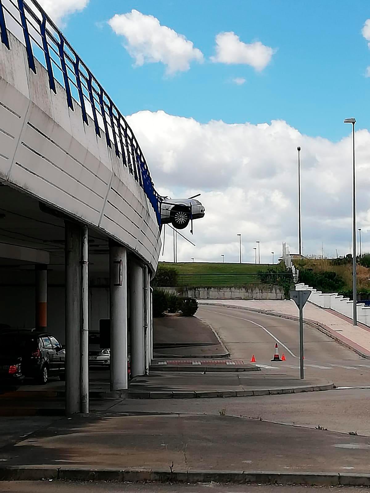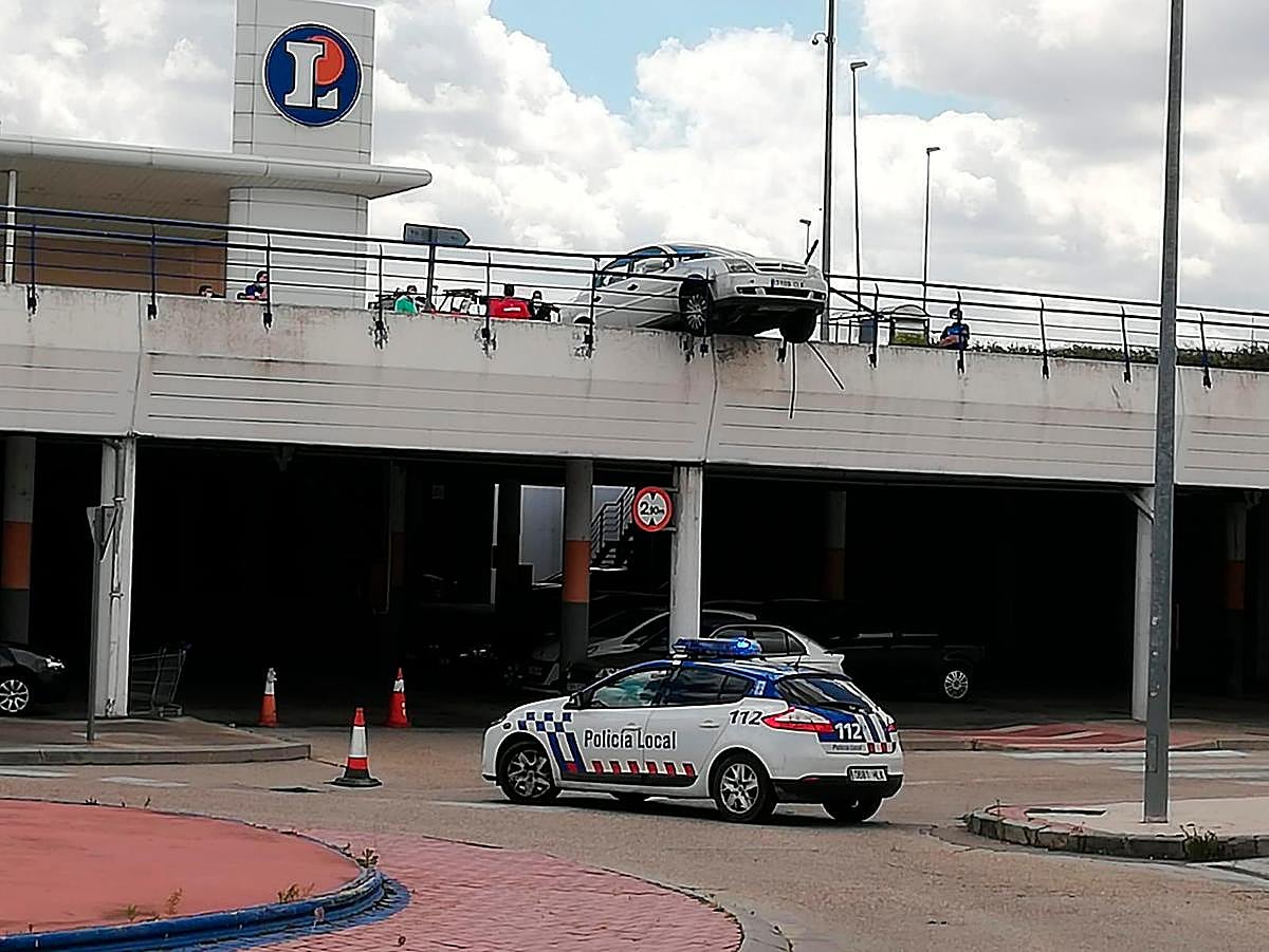 La impactante imagen de un coche a punto de caer al vacío en el aparcamiento del E.Leclerc