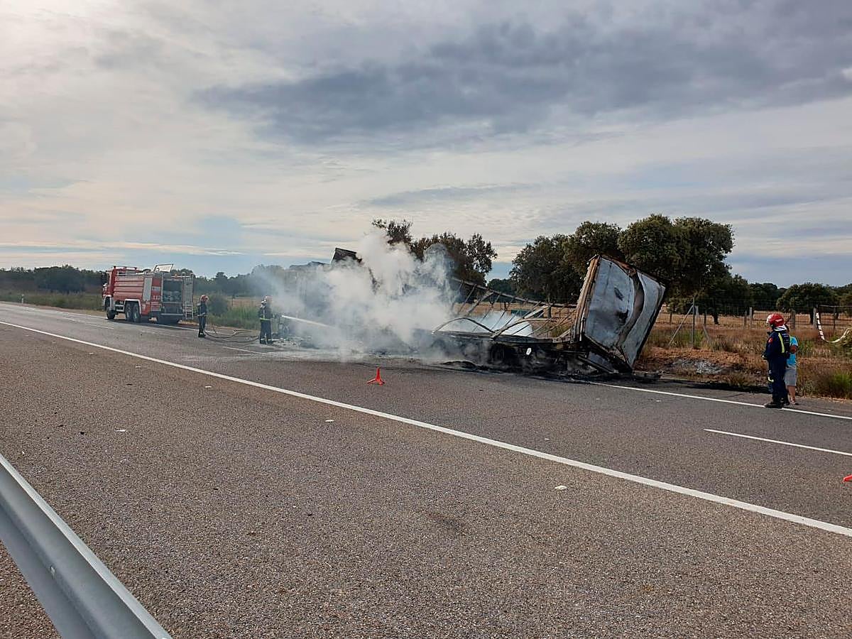 El siniestro se produjo en torno a las 7:00 horas en el kilómetro 288 y al lugar acudieron los bomberos de Ciudad Rodrigo, que se han empleado durante más de tres horas en las labores de extinción del incendio.