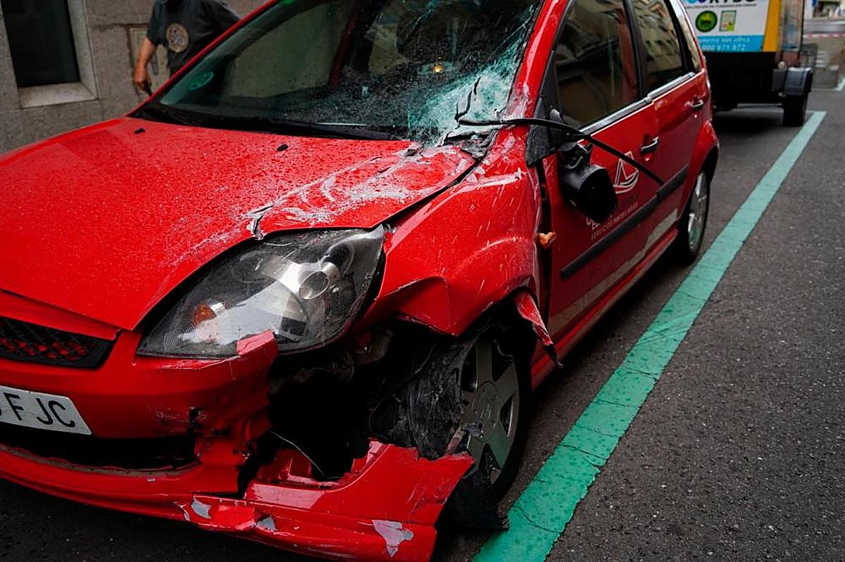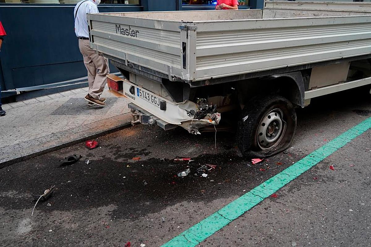 Un herido al empotrar su coche contra un camión parado en la calle Pérez Oliva