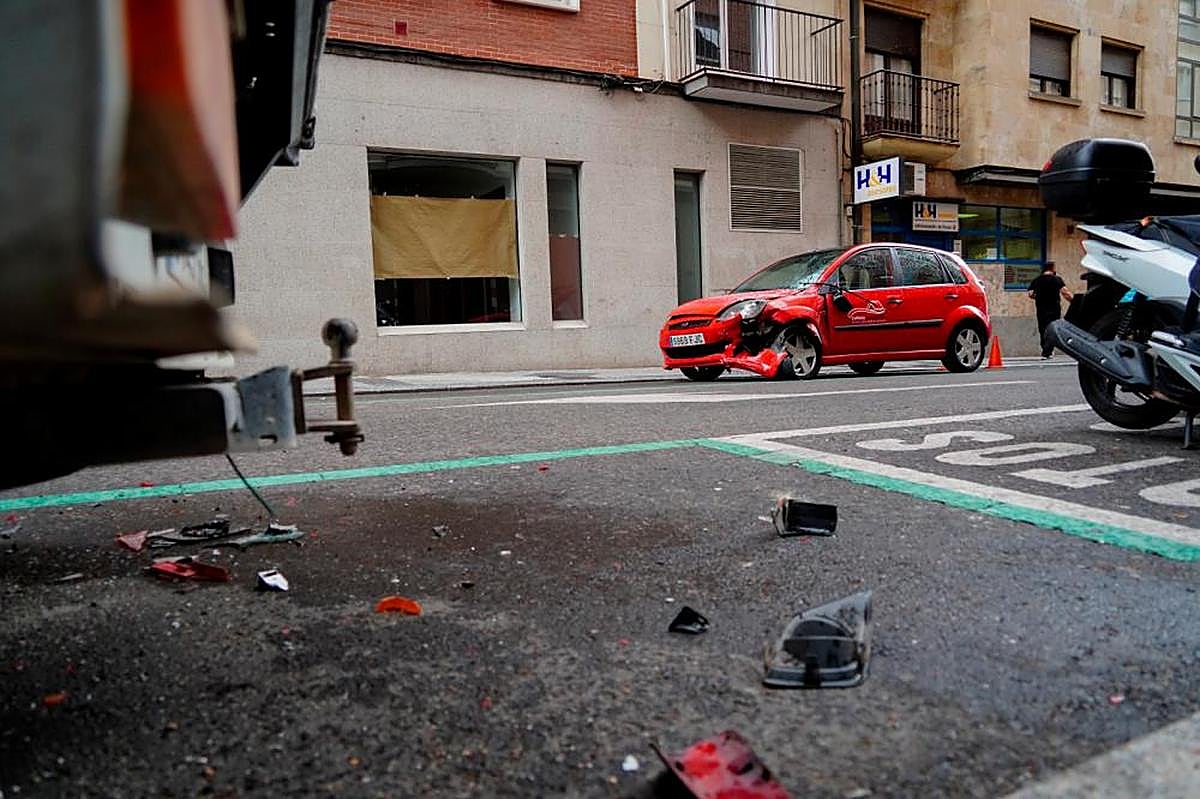 El siniestro se produjo sobre las 12:25 y tuvo que intervenir tanto la Policía local como una ambulancia del Sacyl, que cuando llegó al lugar de los hechos nadie requirió sus atenciones.