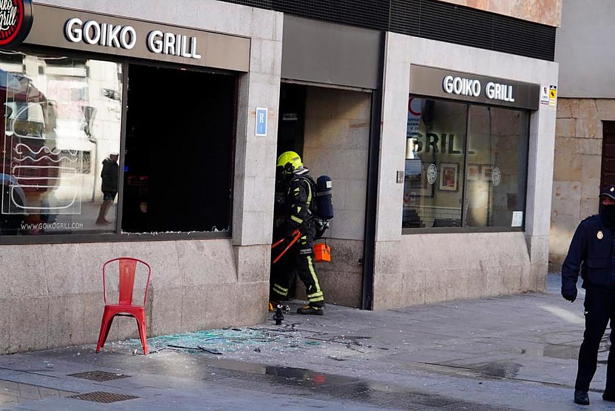 Los bomberos tuvieron que fracturar uno de los cristales del establecimiento para acceder
