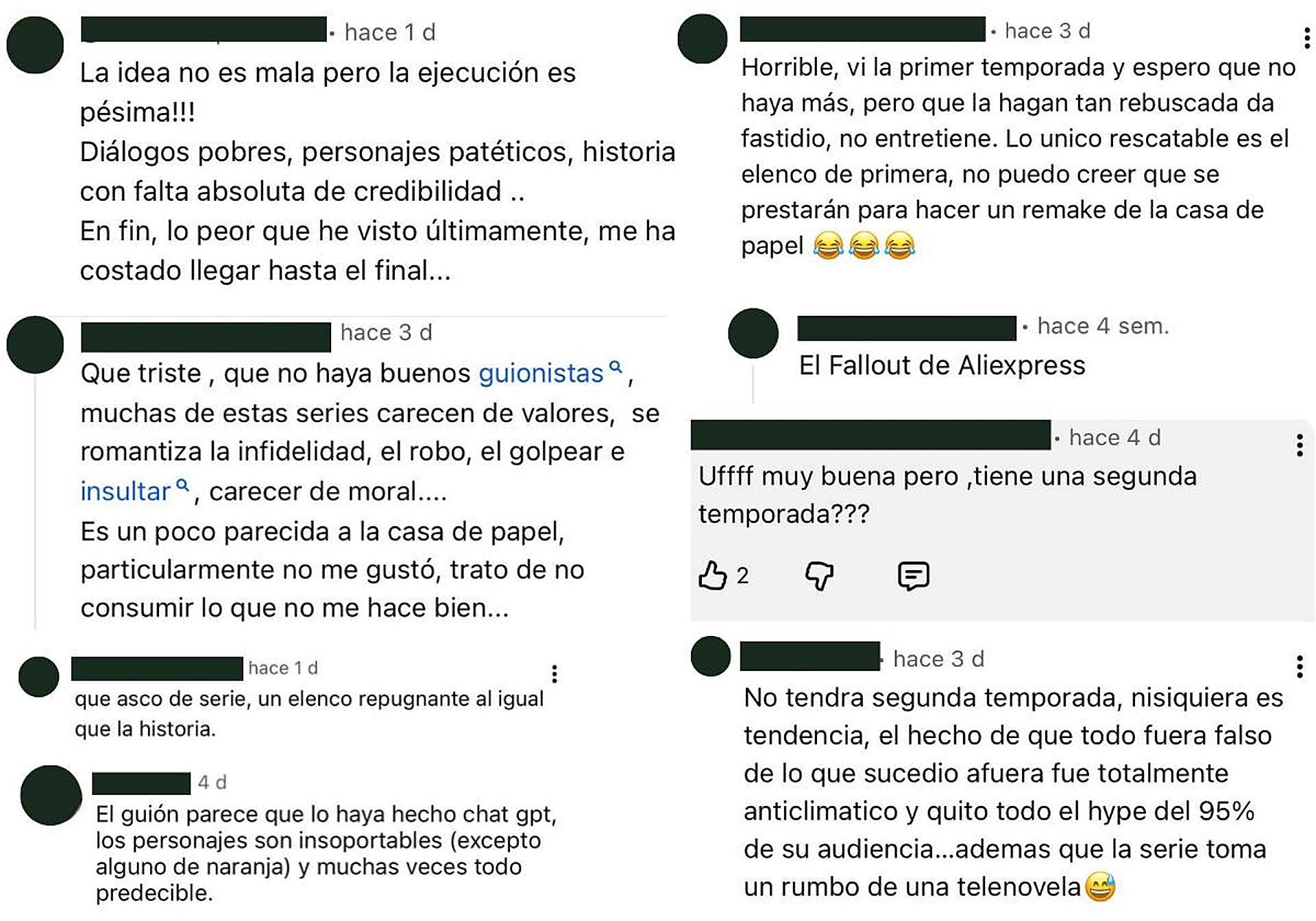 El éxito es incuestionable, sea uno defensor o detractor de la serie. En cambio, cuando ves las reseñas de Google, se observa que la producción tiene una puntuación de 2,1 sobre 5; otros críticos la señalan como un fracaso o como una copia barata de 'Fallout', y en los comentarios de YouTube y redes sociales como Instagram se pueden leer opiniones que incluso la tildan de «lo peor» que han «visto últimamente».