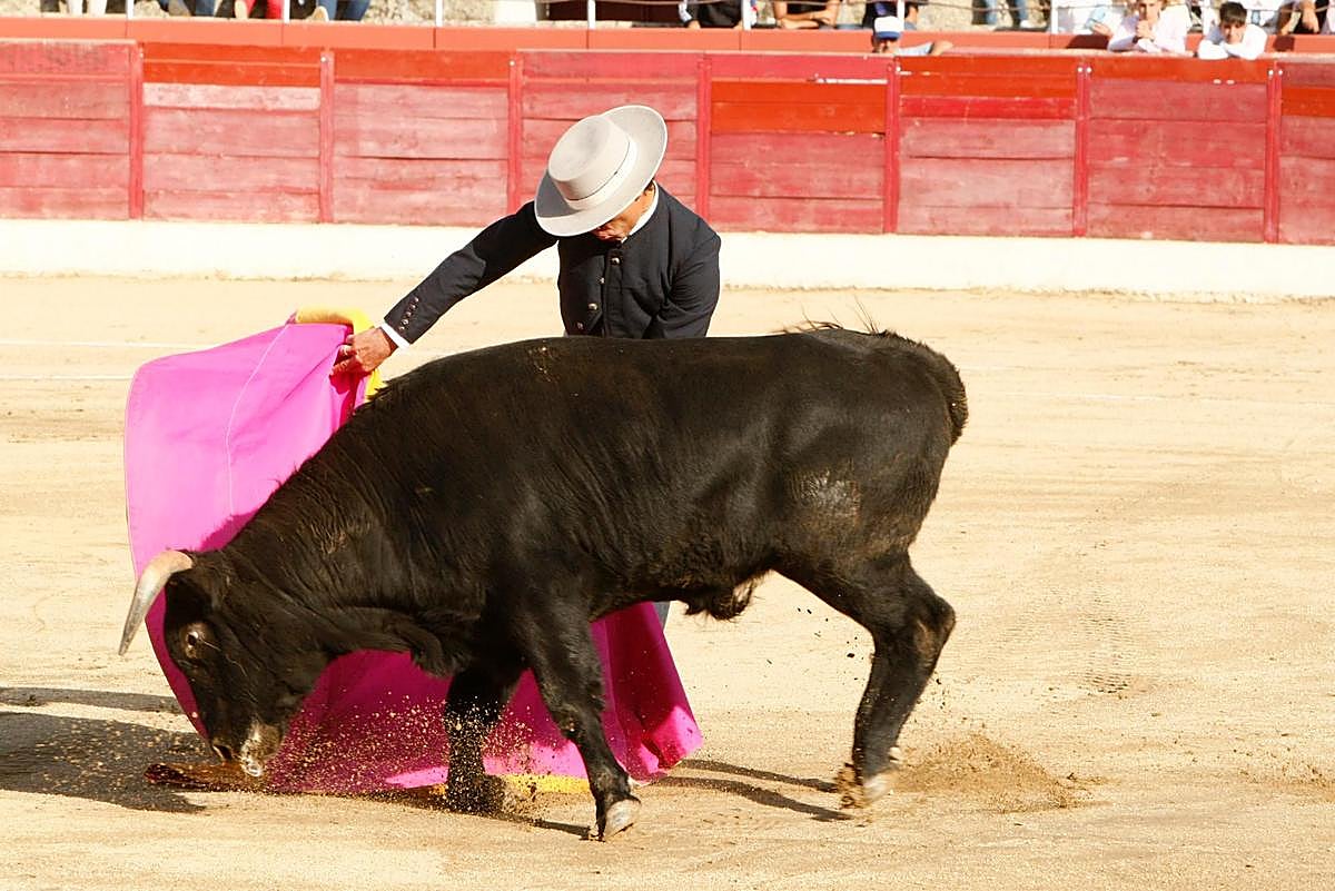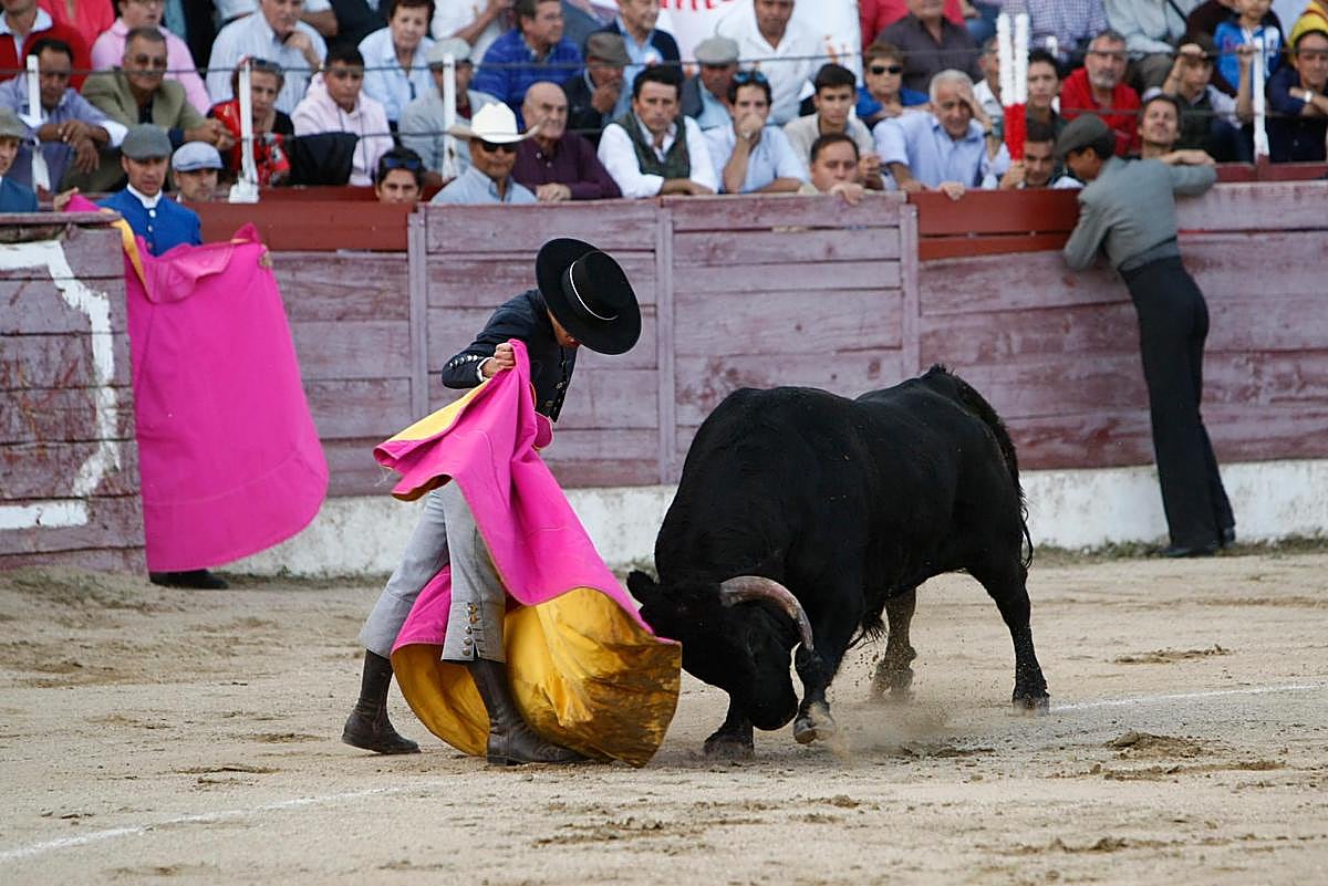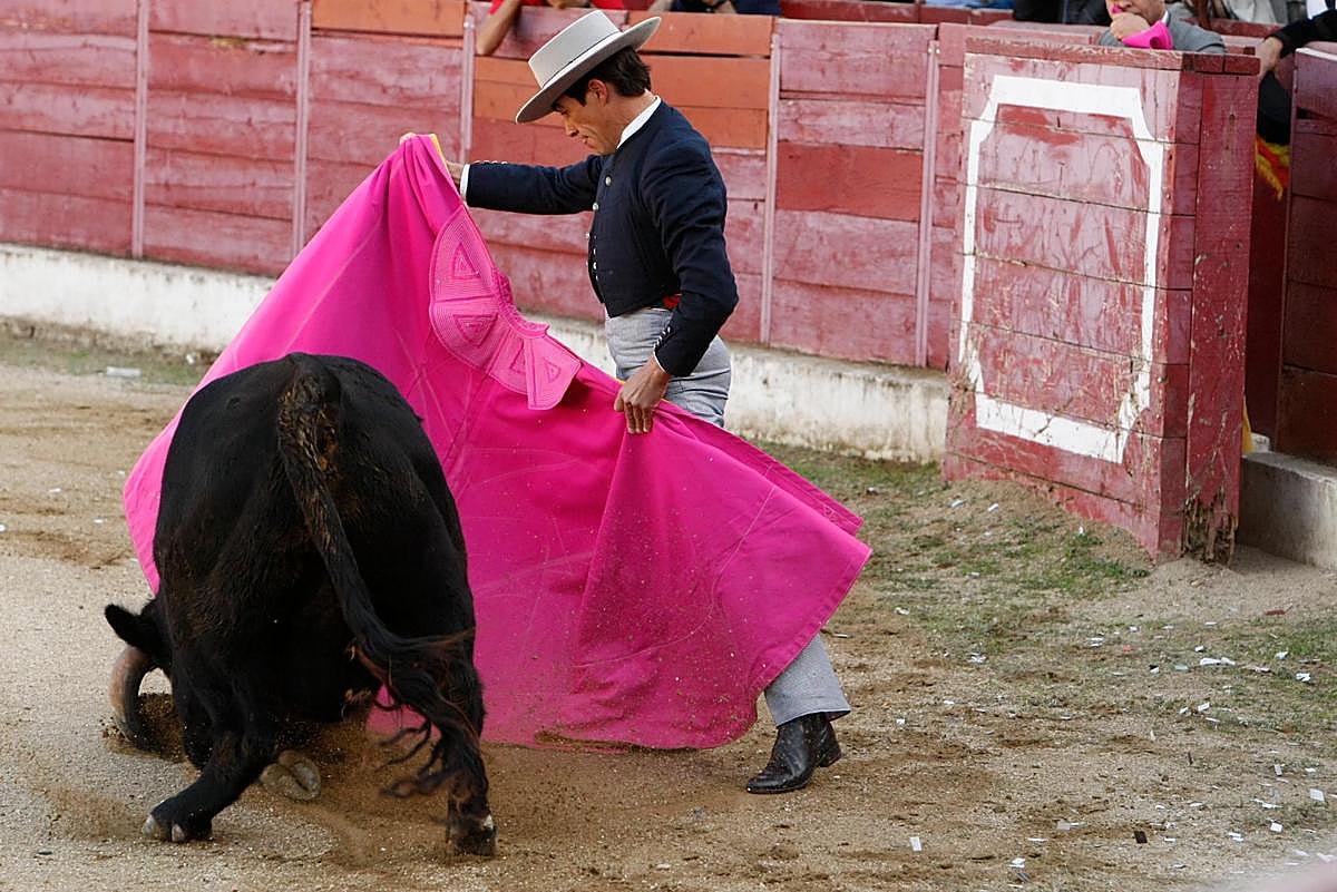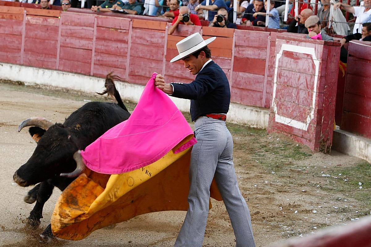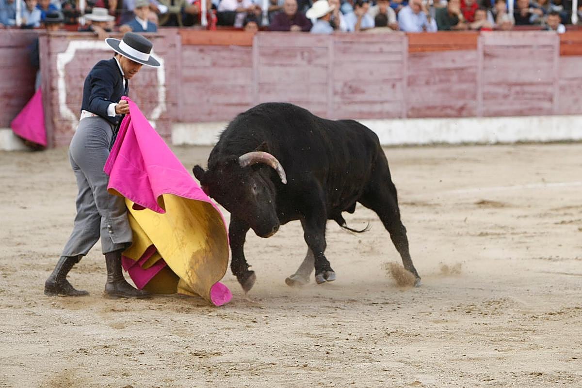 No se arrugó Jesús de la Calzada cuando tuvo que plantar cara al bravo novillo de Ignacio López Chaves, que no se lo puso fácil en el momento en el que más molestó el incómodo viento. Trató de imponerse con muleta de mano baja. No era fácil la papeleta pero la superó. El novillo tuvo duración, entrega, codicia y raza. A Jesús de la Calzada le costó reducir un punto el vibrante ritmo de la velocidad del torete que no bajó en intensidad y, al final del trasteo, se tiró de rodilla para calentar el ambiente de dilatada faena.