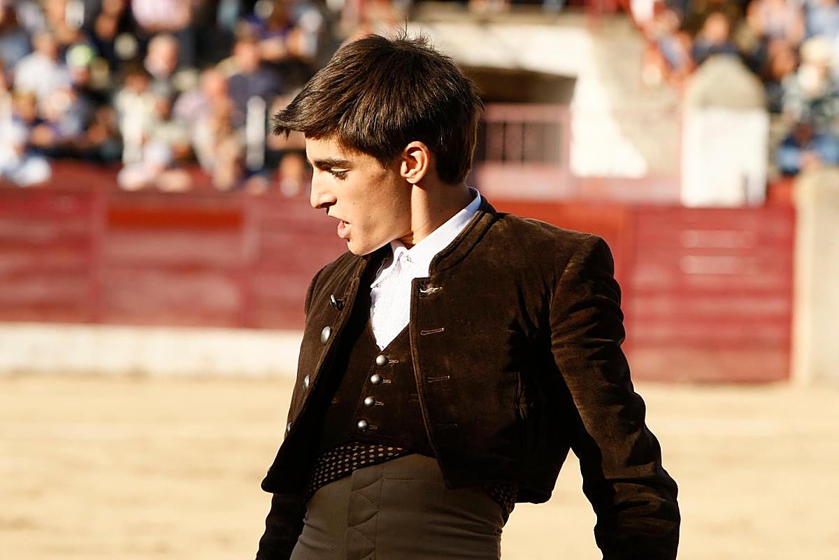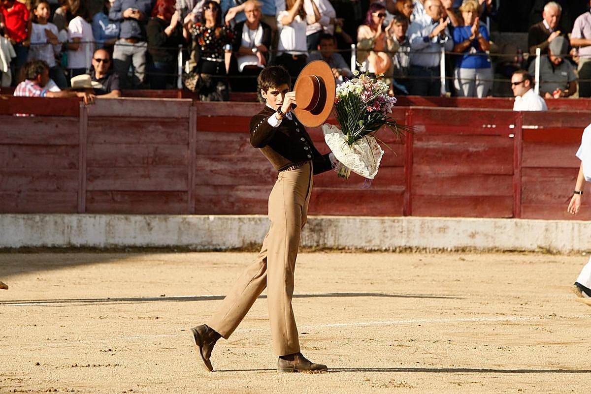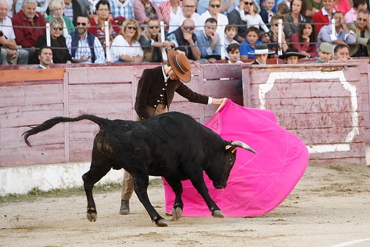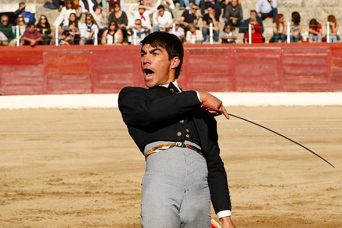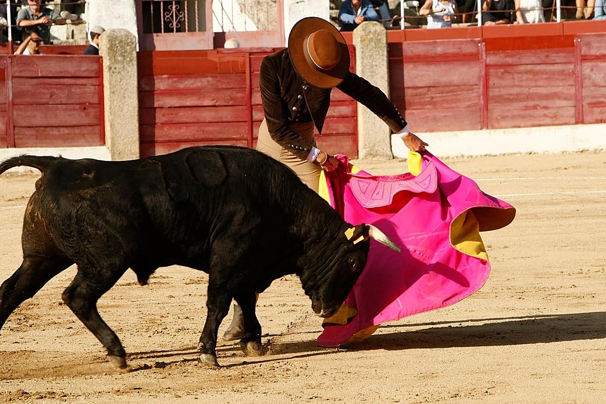 No se arrugó Jesús de la Calzada cuando tuvo que plantar cara al bravo novillo de Ignacio López Chaves, que no se lo puso fácil en el momento en el que más molestó el incómodo viento. Trató de imponerse con muleta de mano baja. No era fácil la papeleta pero la superó. El novillo tuvo duración, entrega, codicia y raza. A Jesús de la Calzada le costó reducir un punto el vibrante ritmo de la velocidad del torete que no bajó en intensidad y, al final del trasteo, se tiró de rodilla para calentar el ambiente de dilatada faena.