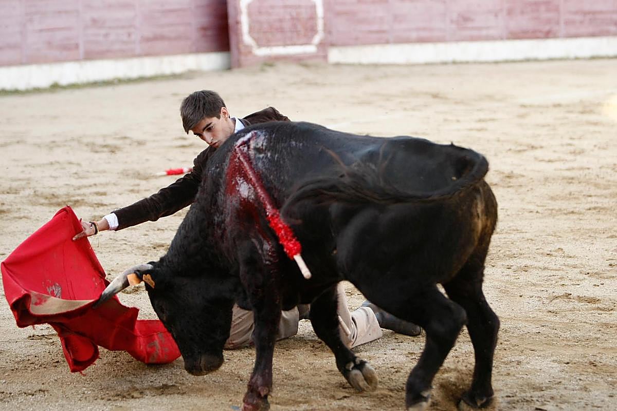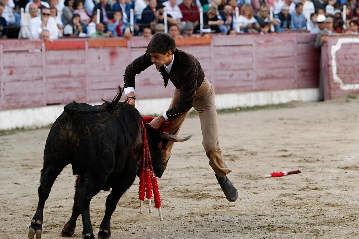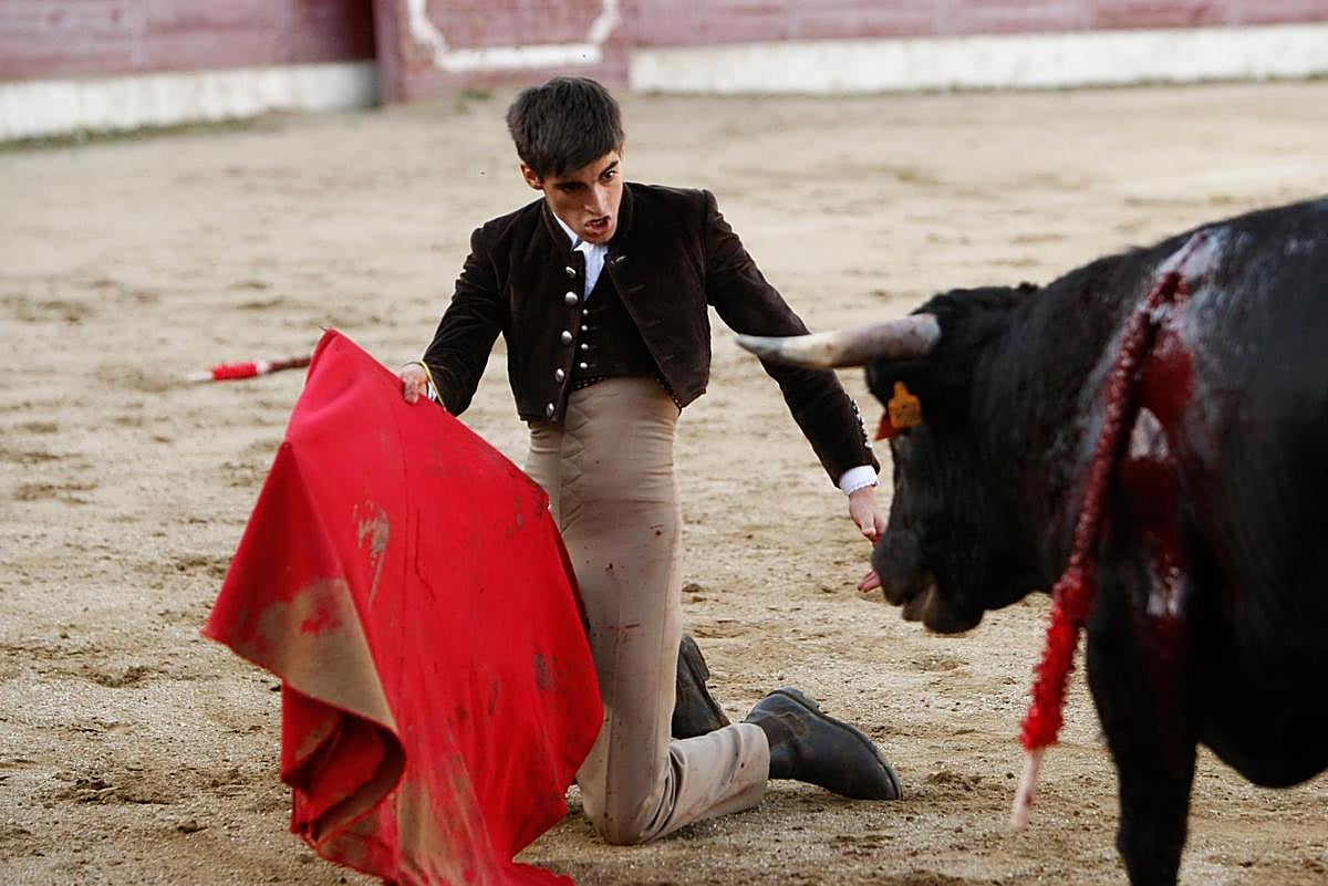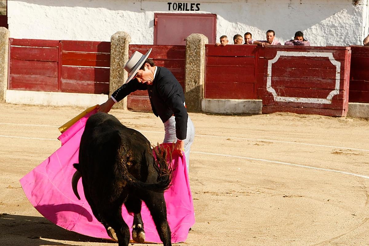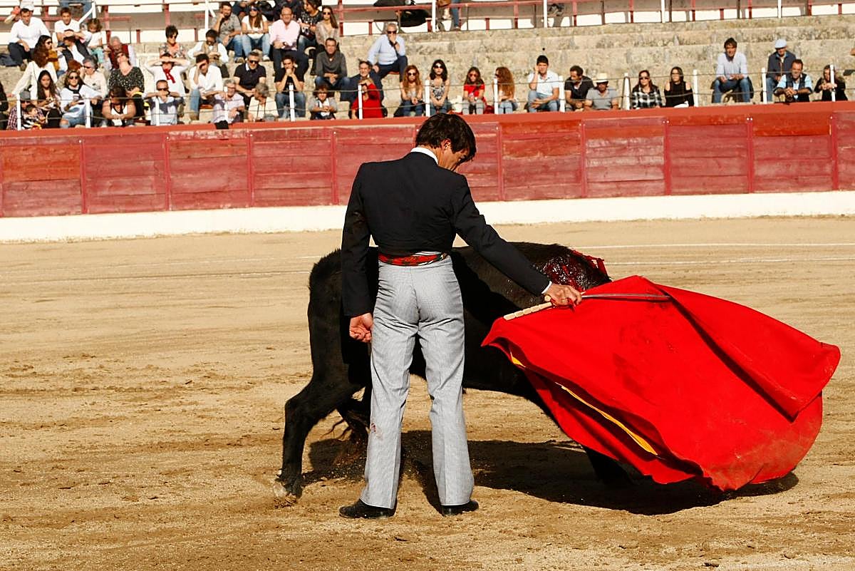 No se arrugó Jesús de la Calzada cuando tuvo que plantar cara al bravo novillo de Ignacio López Chaves, que no se lo puso fácil en el momento en el que más molestó el incómodo viento. Trató de imponerse con muleta de mano baja. No era fácil la papeleta pero la superó. El novillo tuvo duración, entrega, codicia y raza. A Jesús de la Calzada le costó reducir un punto el vibrante ritmo de la velocidad del torete que no bajó en intensidad y, al final del trasteo, se tiró de rodilla para calentar el ambiente de dilatada faena.