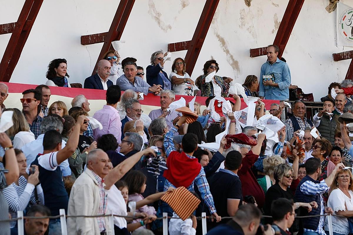 Ismael Martín puso la tarde en ebullición con el bravo eral de Domingo López Chaves, desde el saludo entorpecido por el viento, a las lopecinas del quite y con el vibrante tercio de banderillas. Tardó en cogerle el punto y el aire de muleta porque molestó mucho el viento y no le dejó ser dueño del engaño mientras su oponente se hacía el amo del envite y crecía en su carácter. Le bajó los humos Ismael Martin con una estocada soberbia, que tiró a su oponente sin puntilla en uno de los pasajes más contundentes de la función.
