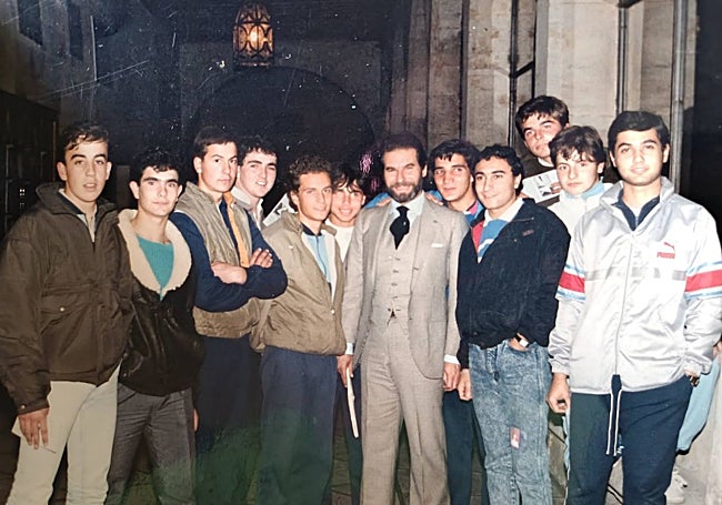 Tras su paso por el aula Unamuno de la Universidad, Rafael de Paula posó con una nutrida representación de los entonces alumnos de la Escuela Taurina de Salamanca que acudieron a verle. De izquierda a derecha aparecen Pacuelo, Juan José Mesa, Pepe Luis Gallego, Héctor Andrés, Jesús Benito, Castuera, Rafael de Paula, Julián Hernández, Miguel Ángel Morin 'El Calé', Domingo Siro, Julián Guerra y Nacho Matilla.
